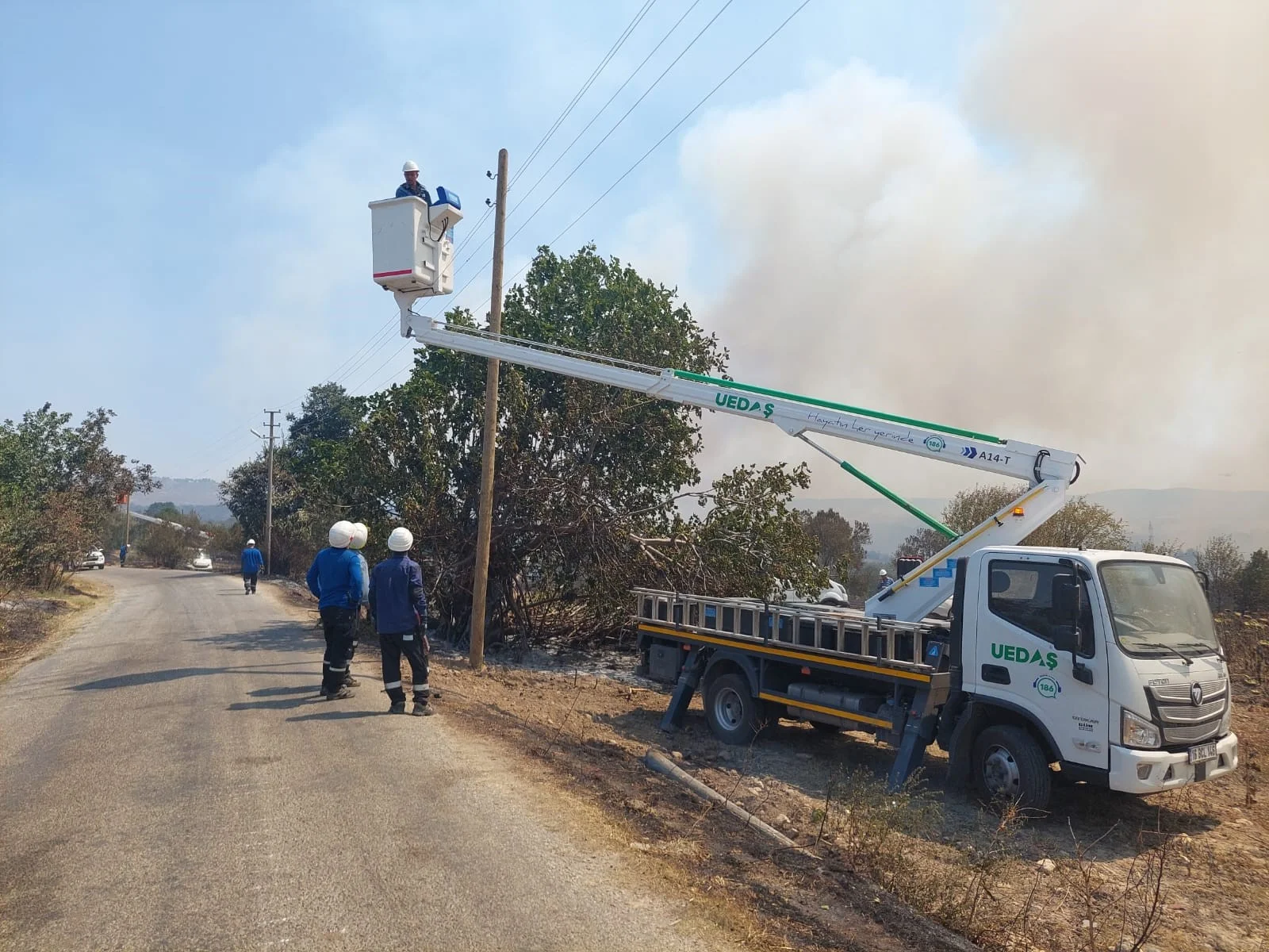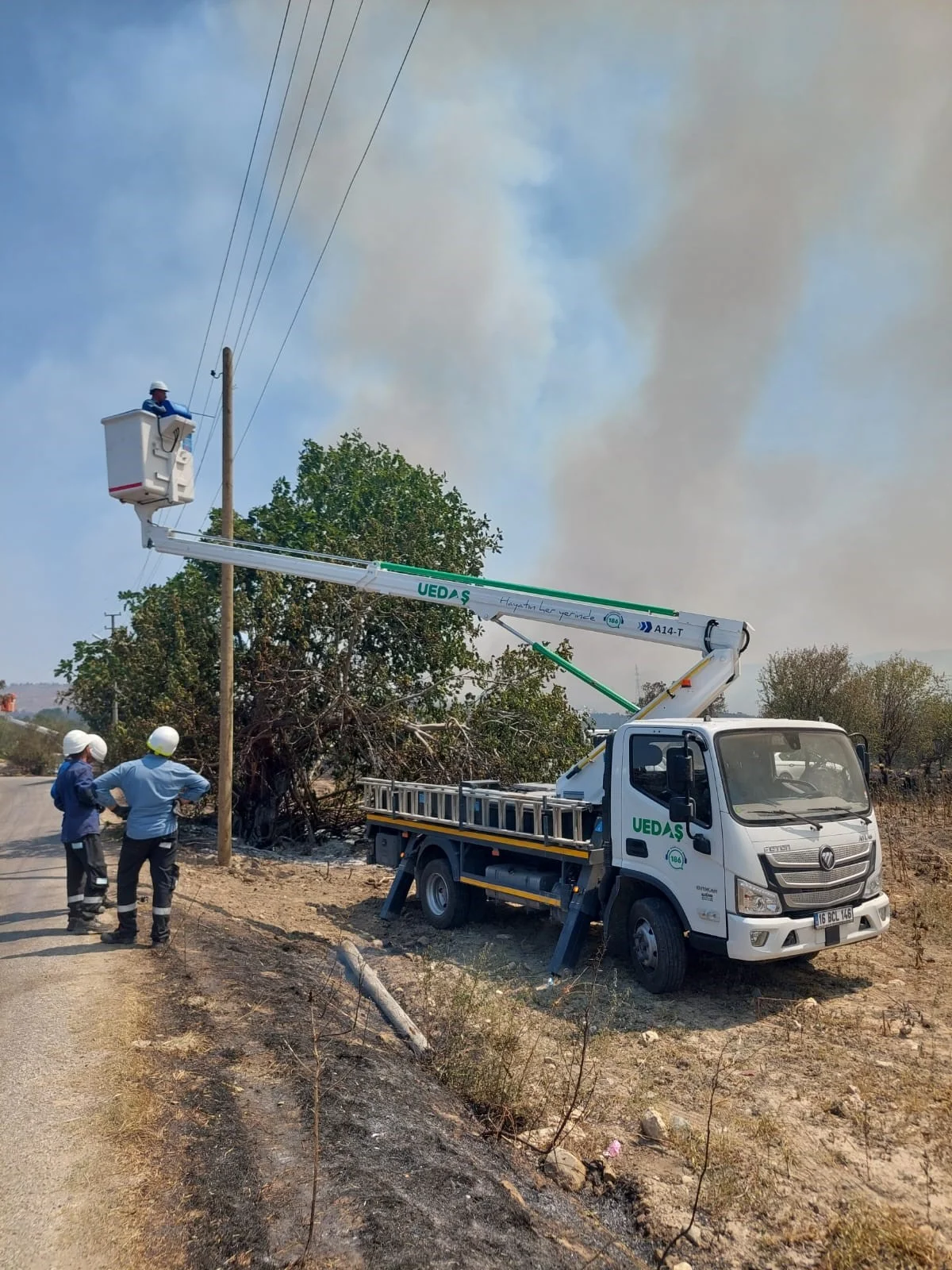 Uludağ Elektrik Dağıtım Anonim Şirketi personelleri Çanakkale'deki yangın felaketine de el uzattı.