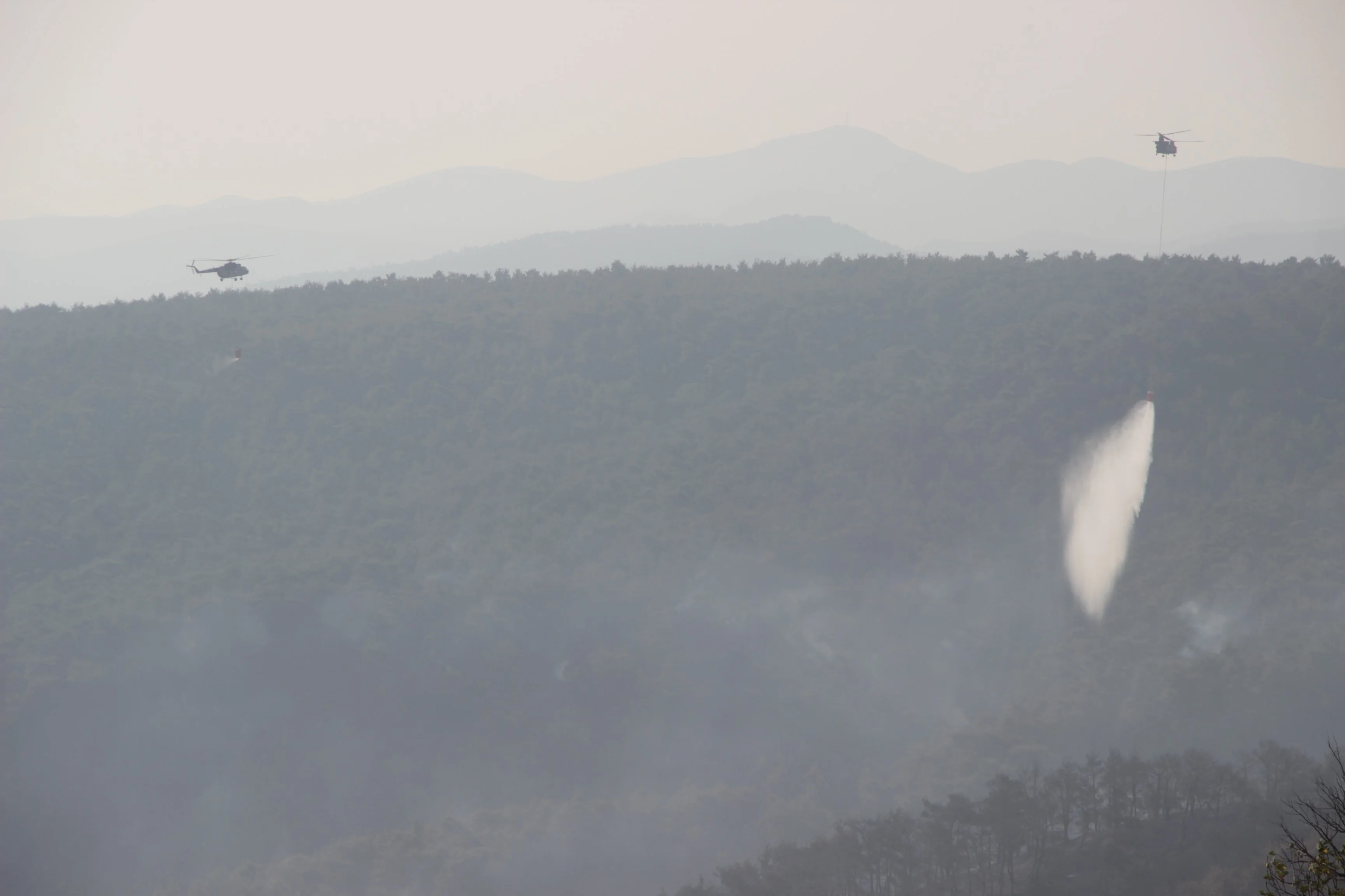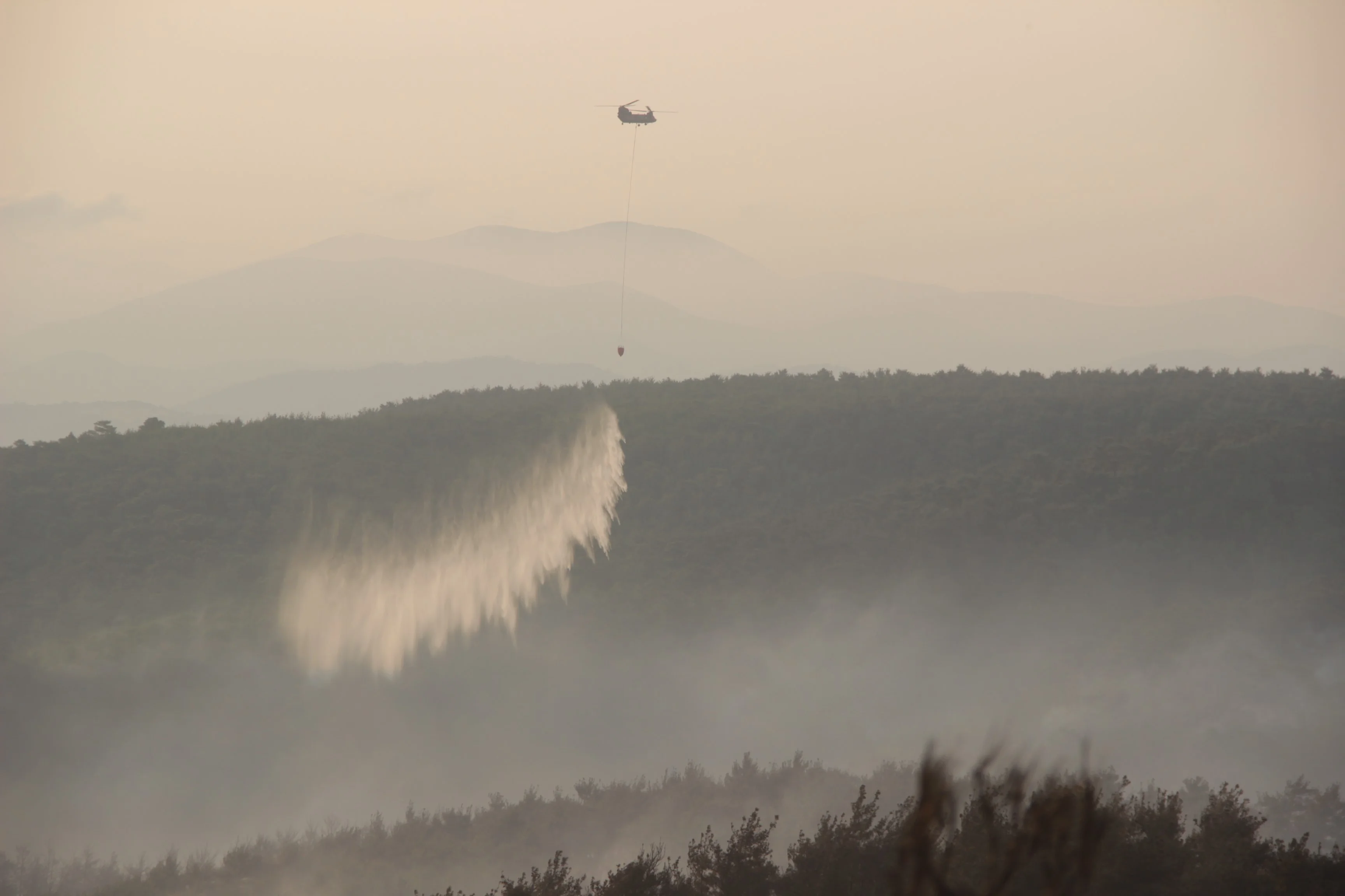 Yangının ilk gününden bu yana gece ve gündüz aralıksız havadan yangına müdahale devam ediyor. Bölgede 8 uçak ve 26 helikopter görev yapıyor. Gece saatlerinde 4 adet yarasa diye tabir edilen gece görüşlü helikopterler ile müdahale gerçekleştiriliyor. Gündüz saatlerinde ise Tarım ve Orman Bakanlığına bağlı uçak ve helikopterlerin yanı sıra Türk Silahlı Kuvvetleri ve Jandarma’ya ait hava unsurları da bölgede hizmet veriyor.