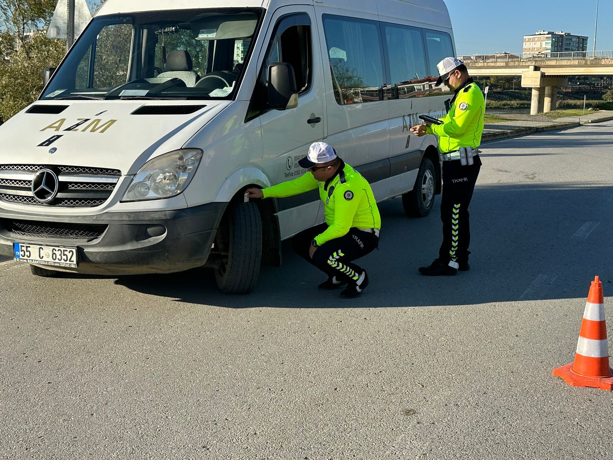 Öğrenci ve servis güvenliğini sağlamak amacıyla yapılan uygulamada, ekipler servis araçlarının lastik durumlarını ve evrak kontrollerini tek tek inceledi. Kış lastiği kullanma zorunluluğunun başladığı bugünlerde yapılan denetimlerde sürücülere güvenli sürüş konusunda uyarılarda da bulunuldu.