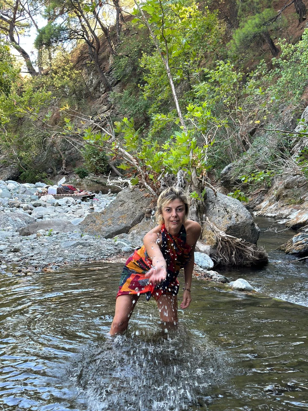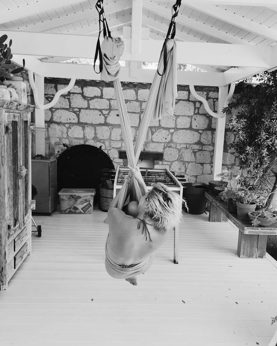 Çeşme'deki evinin terasında hamak yogası yaparak sosyal medyada esnekliğiyle gündem olan güzel oyuncu, şimdilerde  Kaz Dağları'nın yolunu tuttu.