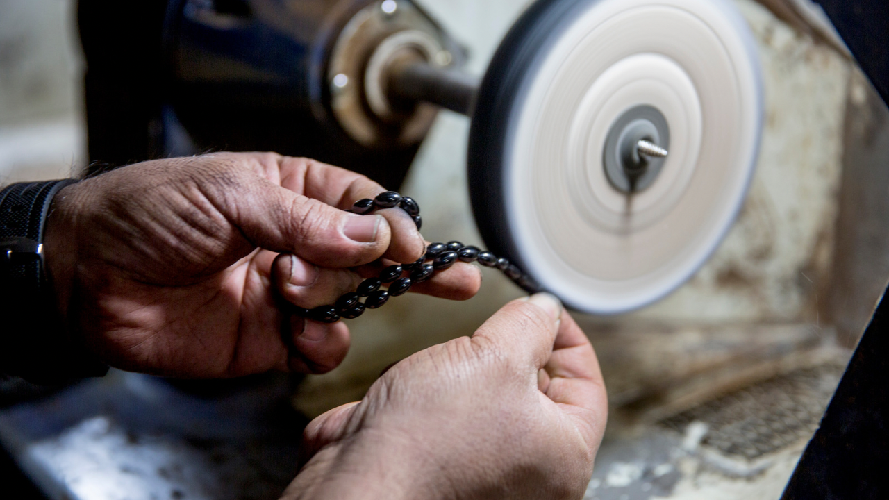 Ardından ham madde küçük parçalara ayrılır ve boncuk haline getirilmek üzere torna tezgâhına alınır. Tornalama işlemi, tespih yapımının en kritik aşamalarından biridir. Usta ellerde şekillenen boncuklar, istenen boyut ve forma getirilir. Boncuklar hazır hale geldikten sonra delme işlemi yapılır. Her boncuğun tam ortasından hassas biçimde delik açılır. Bu işlem büyük dikkat gerektirir; çünkü yanlış açılan bir delik tüm boncuğun kullanılmaz hale gelmesine neden olabilir.