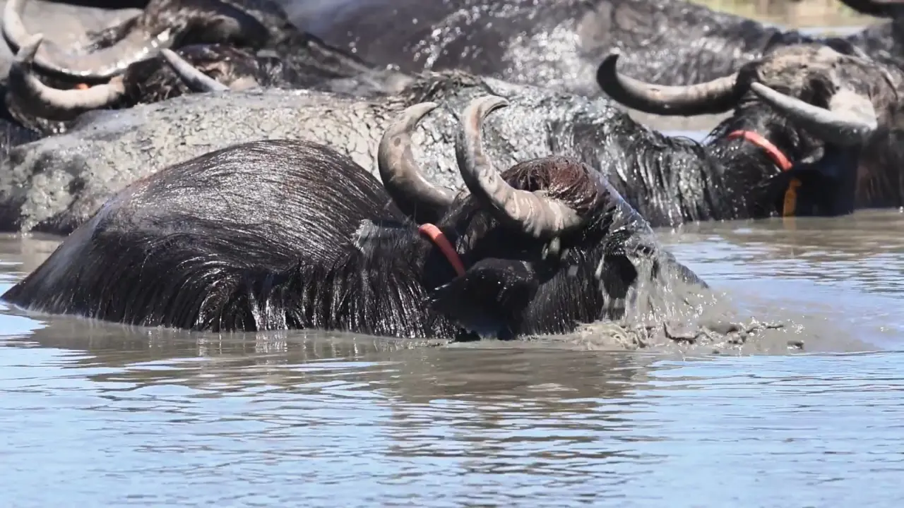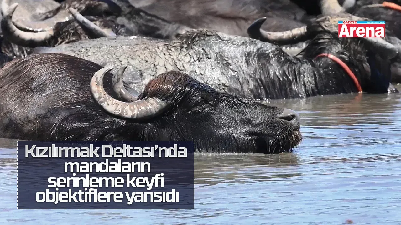 Sıcaktan bunalan mandalar, toplu halde Kızılırmak Deltası Kuş Cenneti’ndeki sulak alanlara girerek serinledi. Bu anlar, Cumhuriyet Savcısı ve kuş fotoğrafçısı Vedat Soğukpınar tarafından objektiflere yansırken, mandaların su keyfine zaman zaman akbalıkçıllar da eşlik etti.