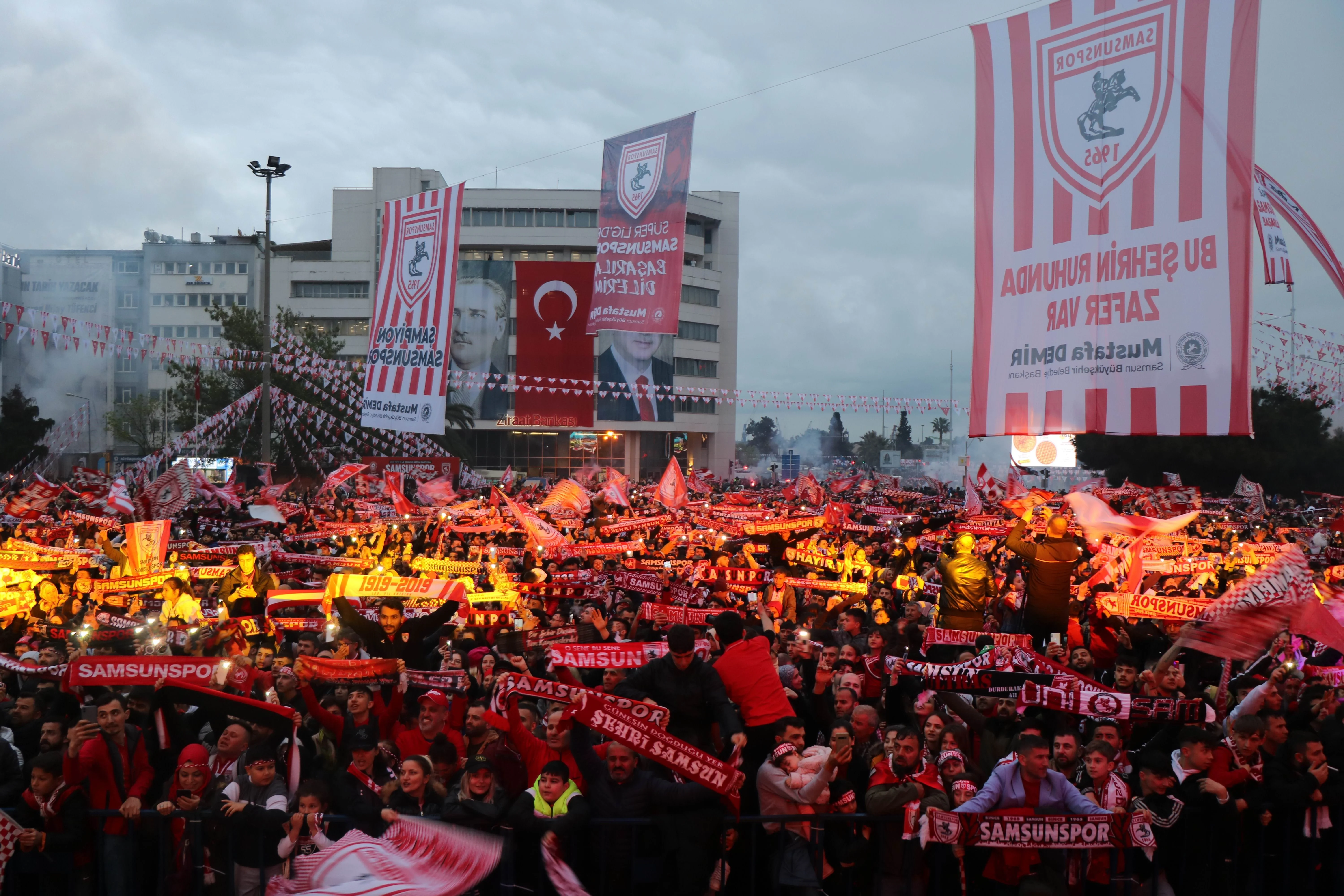 Ligin bitmesine 6 hafta kala Süper Lig’e çıkmayı garantileyen Samsunspor, bu sefer de ligin bitimine 4 hafta kala lider bitirip, şampiyon olmayı garantiledi. Kırmızı-beyazlı ekibin taraftarları, 11 yıl sonra gelen şampiyonluğu Cumhuriyet Meydanı’nda yapılan coşkulu etkinlikler ile kutladı.