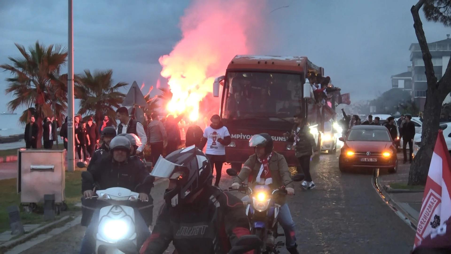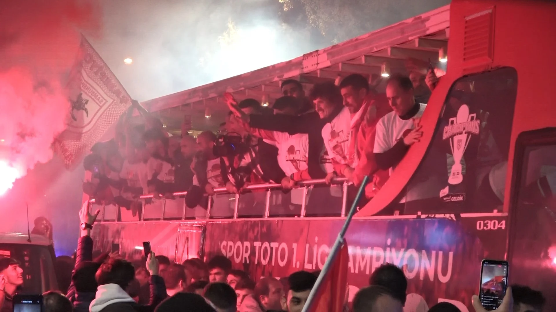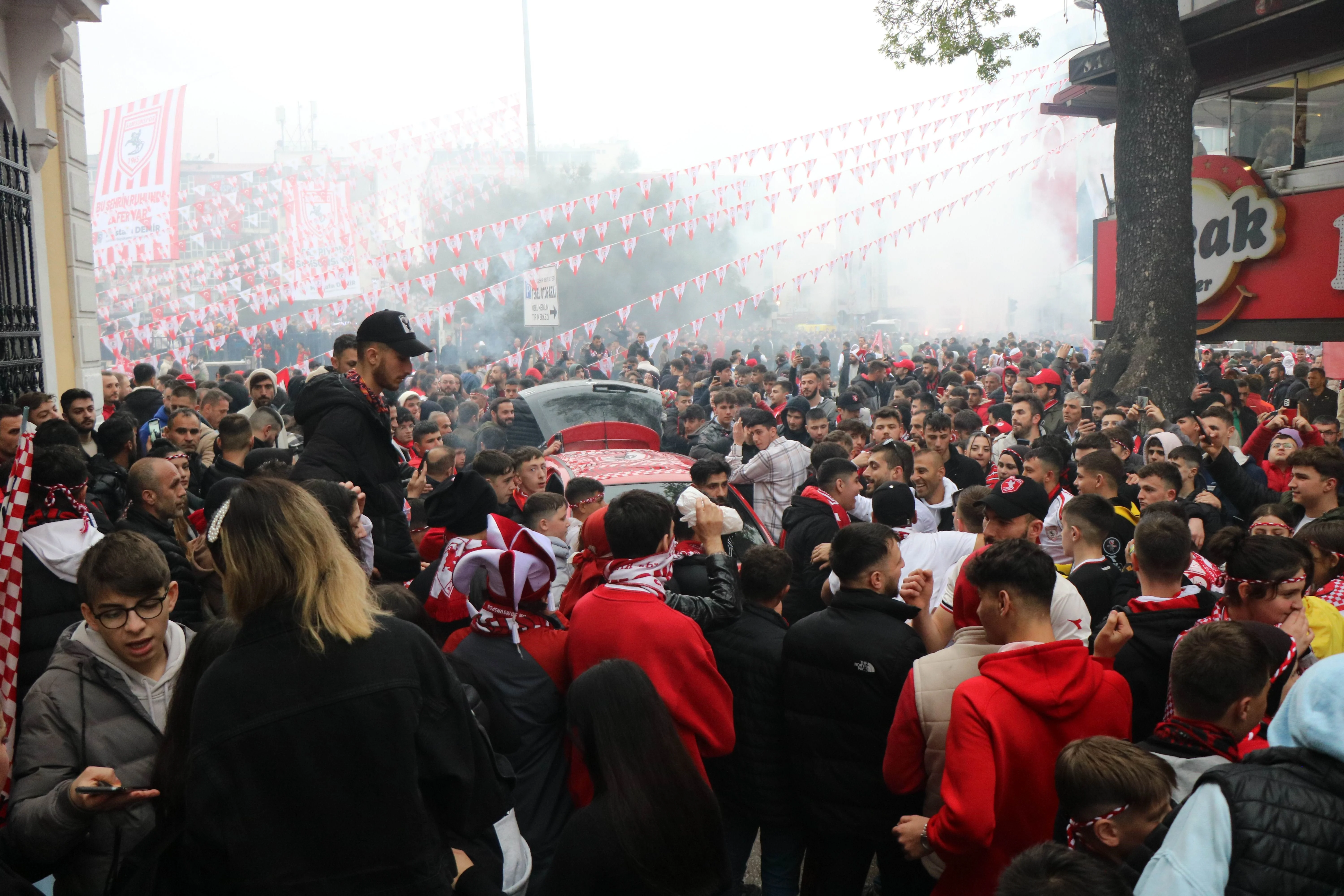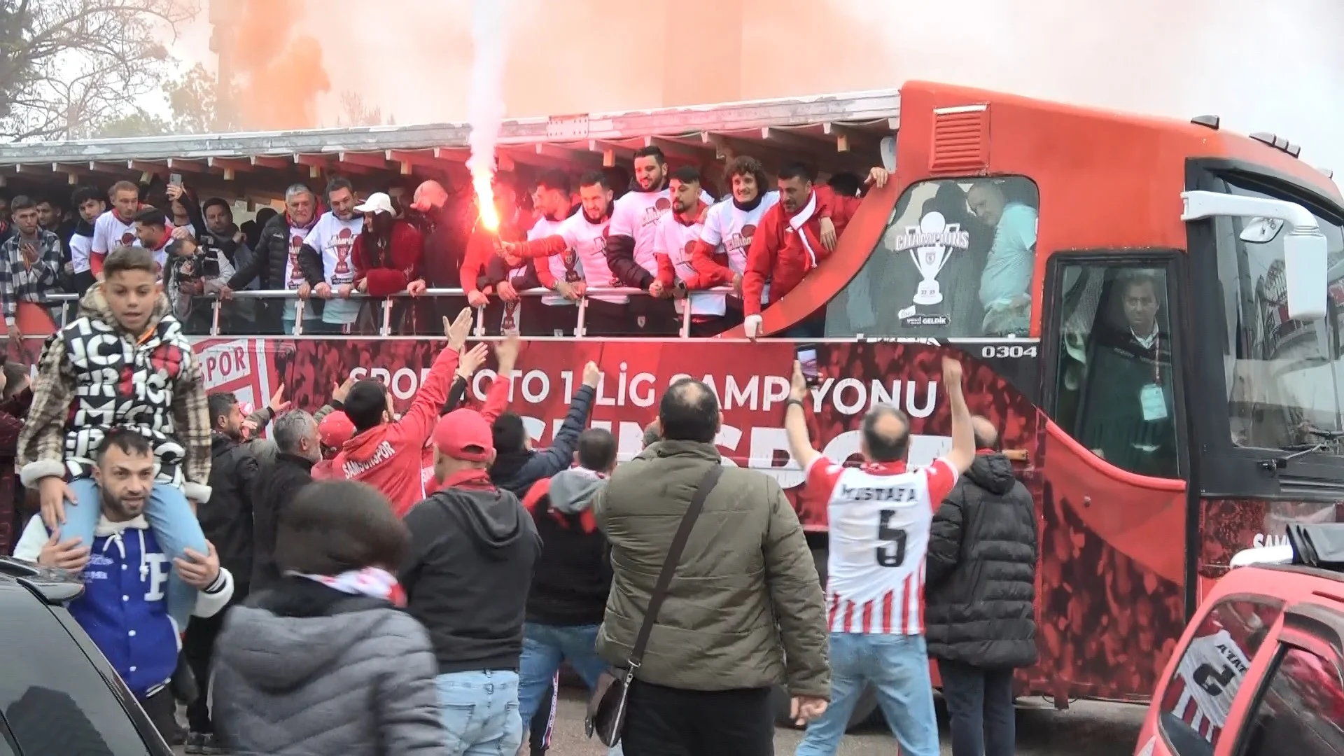 Ankara Keçiörengücü’nü yenerek liderliği garantileyen Samsunspor’da futbolcular maçın ardından Nuri Asan Tesisleri’ne gelerek buradaki açık otobüslere bindiler. Otobüs ile şampiyonluk turu atan futbolcular ve teknik heyet, daha sonra meydana gelerek etkinliklere katıldılar. Meydanda bekleyen coşkulu kalabalık meşaleler ve havai fişekler ile şampiyonluğu kutlarken, DJ tarafından çalınan şarkılara eşlik edip, çılgınca eğlendiler.