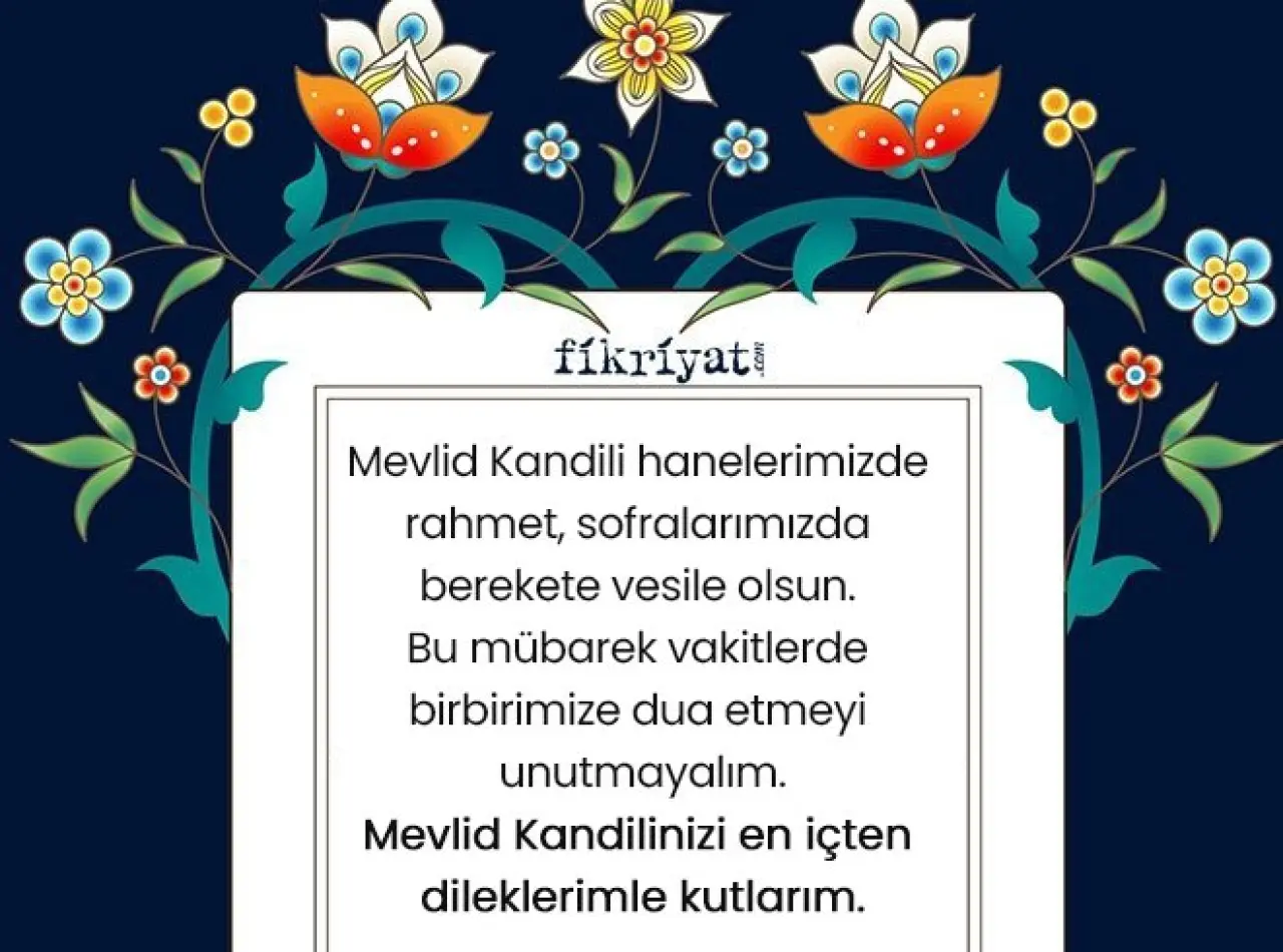 “Bu mübarek gecede, dualarınızın kabul olmasını ve kalbinizdeki tüm dileklerin gerçekleşmesini diliyorum. Mevlid Kandiliniz mübarek olsun.”