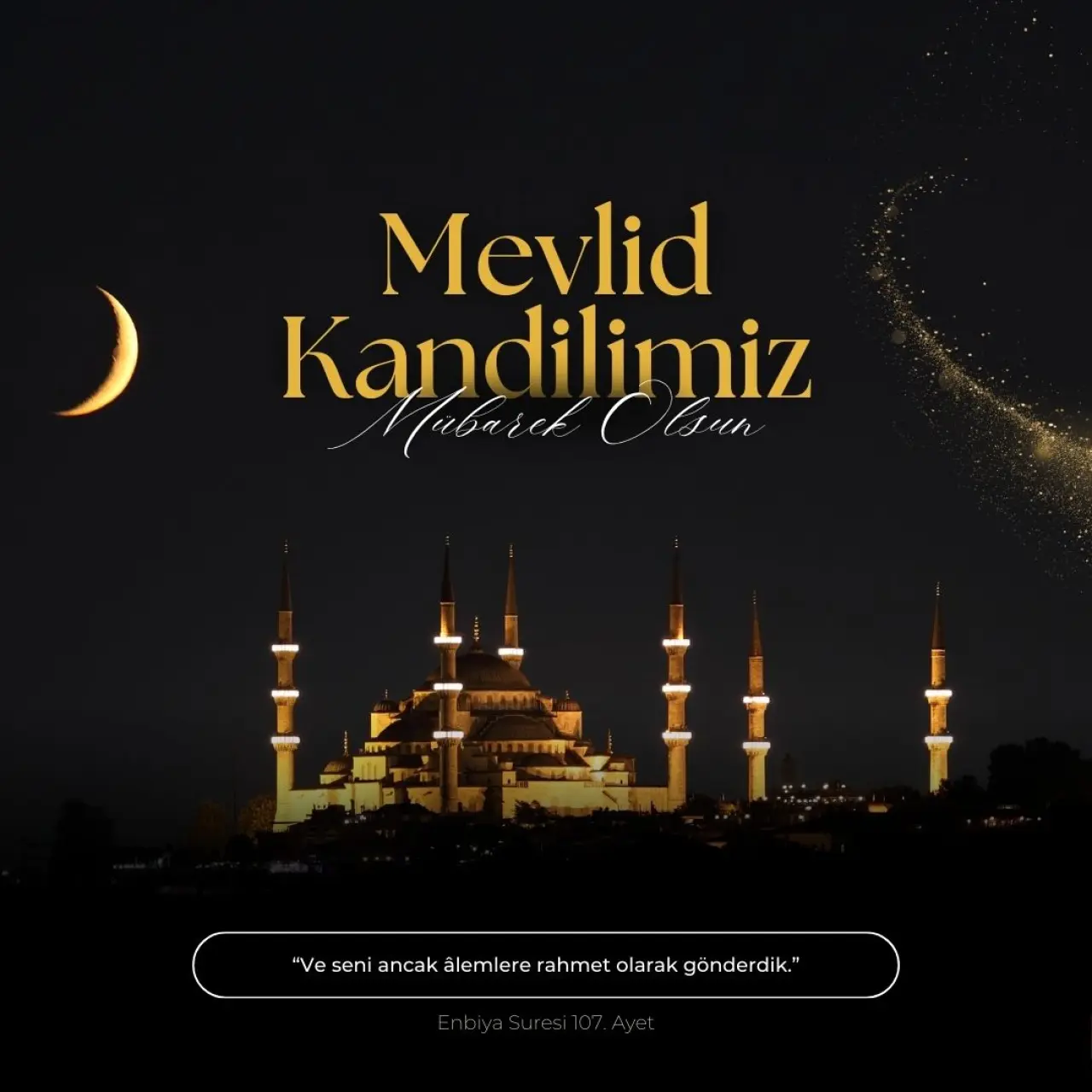 “Mevlid Kandili, kalpleri sevgiyle dolduran, ruhları arındıran bir gecedir. Tüm dualarınızın kabul olması dileğiyle.”