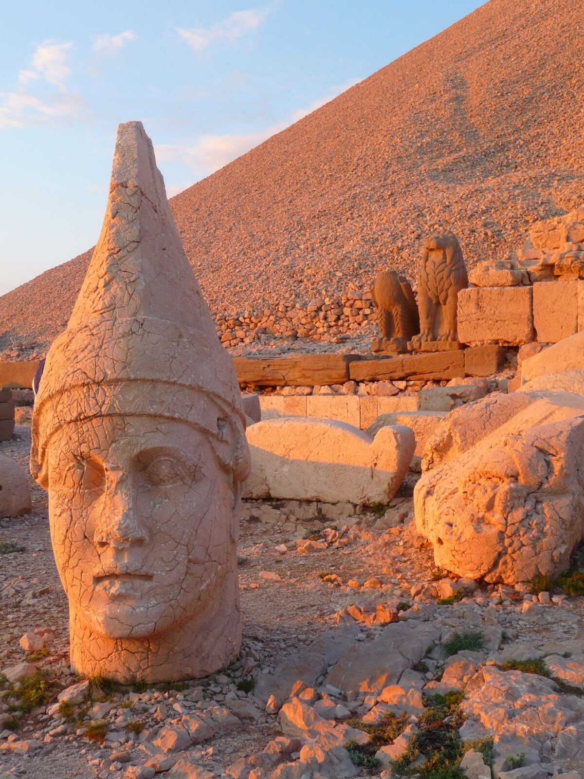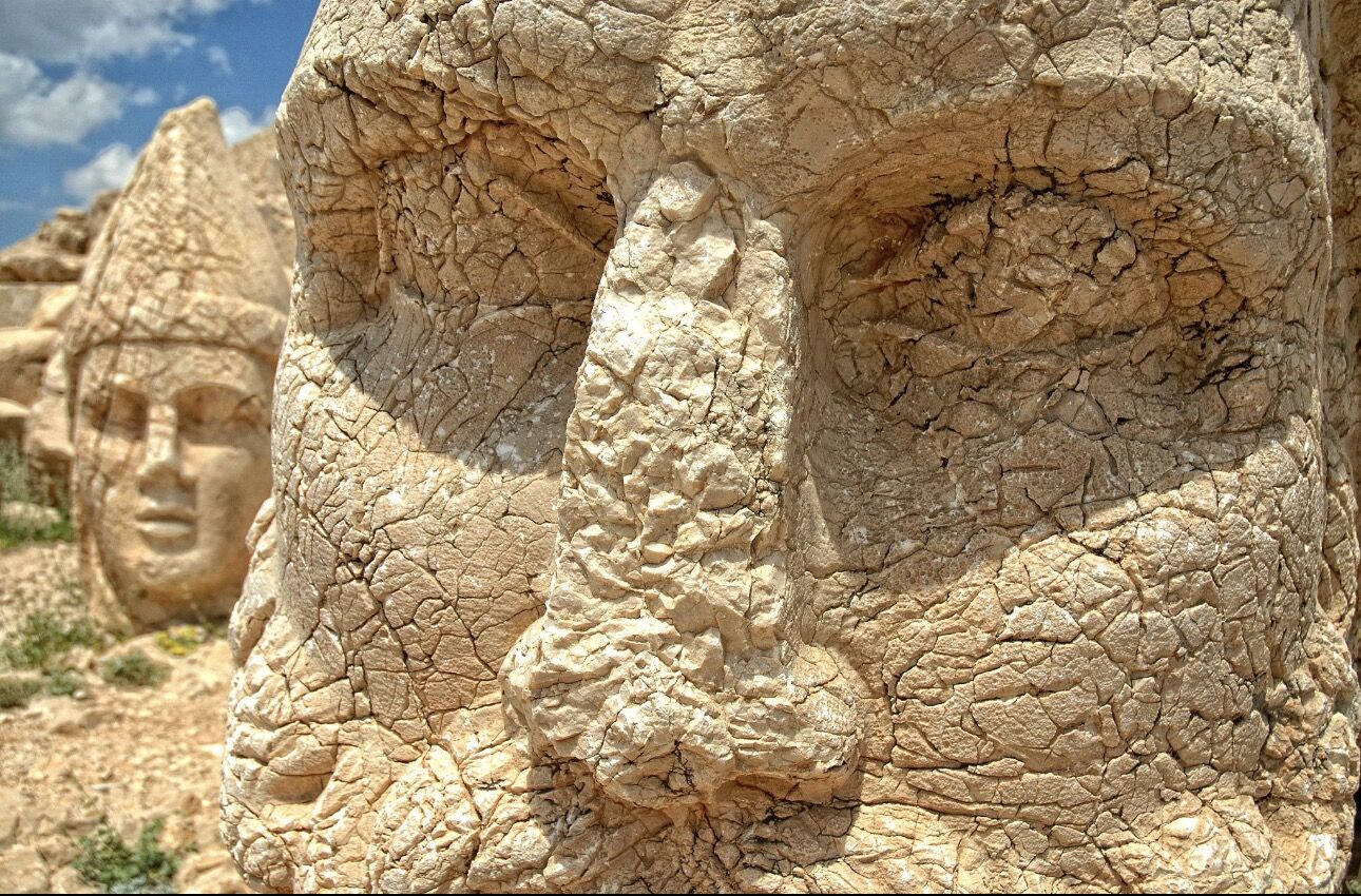 Nemrut Dağı’ndaki dev heykellerin hikâyesi milattan önce 1. yüzyıla kadar uzanıyor. Kommagene Krallığı’nın hükümdarı olan Kral I. Antiochos, hem kendi tanrısal gücünü göstermek hem de ölümünden sonra anısını yaşatacak bir anıt oluşturmak amacıyla Nemrut Dağı’nın zirvesine dev bir kutsal alan yaptırdı. Bu kutsal alanın merkezinde ise yaklaşık 8-10 metre yüksekliğe ulaşan tanrı ve kral heykelleri yer alıyordu. Zeus, Apollon, Herakles ve Kommagene tanrılarının tasvir edildiği bu heykeller, aynı zamanda Antiochos’un kendisini de tanrılarla eşit bir konuma koyduğunu gösteriyordu.