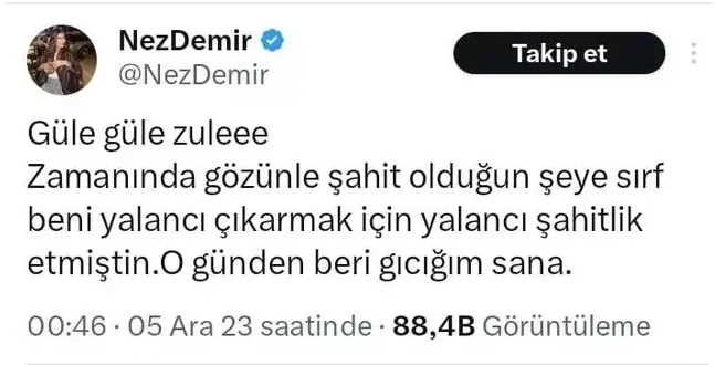 Şule'nin gözaltı kararını gören ünlü fenomen Nez Demir Şule paylaşımıyla magazin gündemine oturdu.