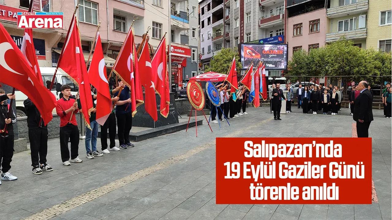 Samsun’un Salıpazarı ilçesinde 19 Eylül Gaziler Günü dolayısıyla anlamlı bir tören gerçekleştirildi. Cumhuriyet Meydanı’nda düzenlenen program, Atatürk Anıtı’na çelenk sunulmasıyla başladı. Tören sırasında katılımcılar saygı duruşunda bulunurken, İstiklal Marşı coşkuyla okundu.