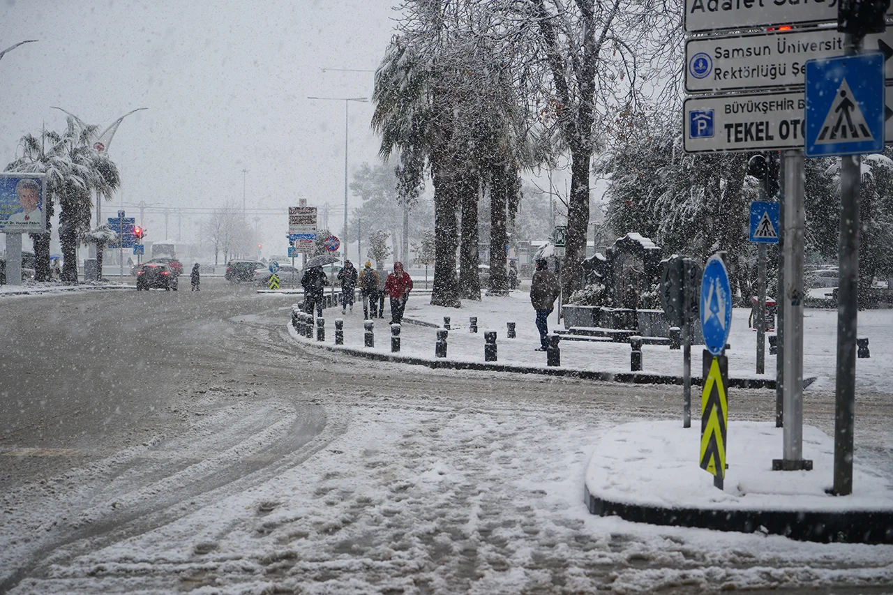 Meteoroloji Genel Müdürlüğü'nün (MGM) günlerdir yaptığı uyarılar sonucunda Samsun'da gece saatlerinde etkili olan kar yağışı şehir merkezi ve birçok ilçeyi beyaz gelinliği ile kapladı. Sabah gündelik hayatlarına başlamak için evden çıkan vatandaşlar, bembeyaz bir Samsun'a uyandı. Ortaya kartpostallık görüntüler ortaya çıktı.