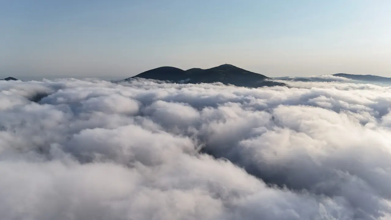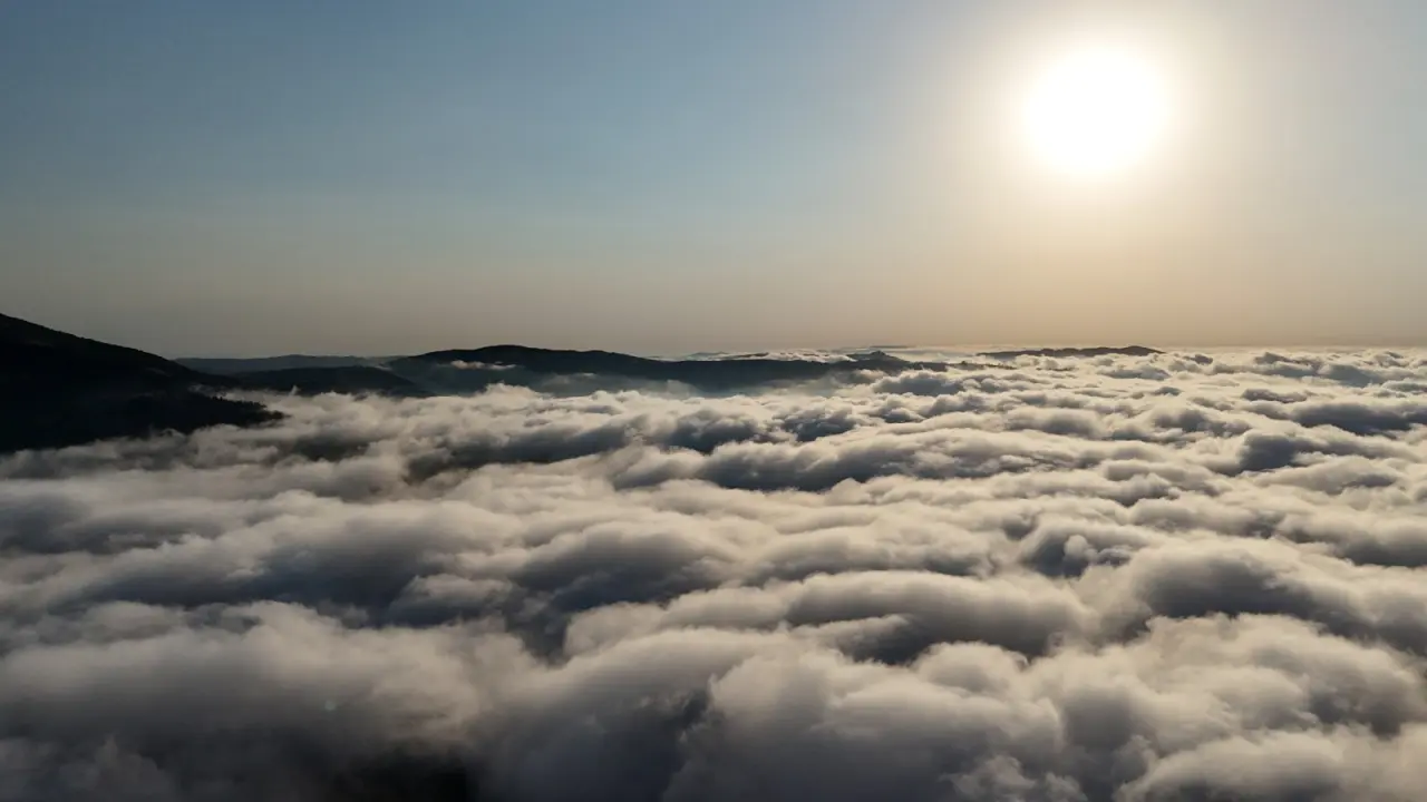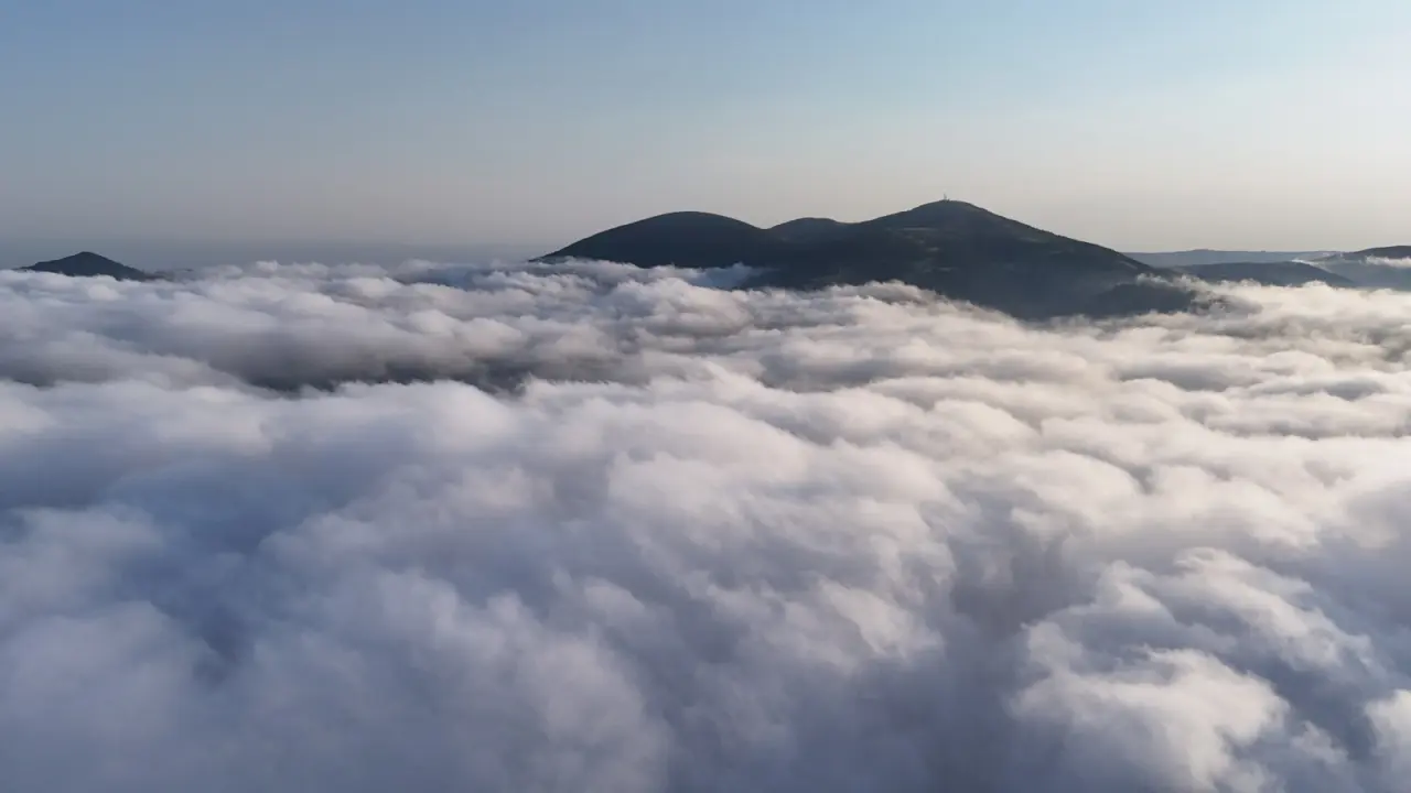 Dronla kaydedilen görüntülerde yoğun sisin dağın eteklerini kapladığı, zirvenin ise adeta bulutların üzerinde süzülür gibi göründüğü anlar dikkat çekti. Sis, dağda kartpostallık bir atmosfer oluşturdu.