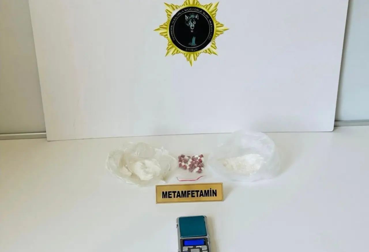 Yapılan aramalarda 320 gram metamfetamin, 48 gram sentetik kannabinoid, 32 adet sentetik ecza, 1 adet ruhsatsız tabanca, 1 adet kurusıkı tabanca, 1 adet hassas terazi ve 2 adet uyuşturucu madde kullanım aparatı ele geçirildi.