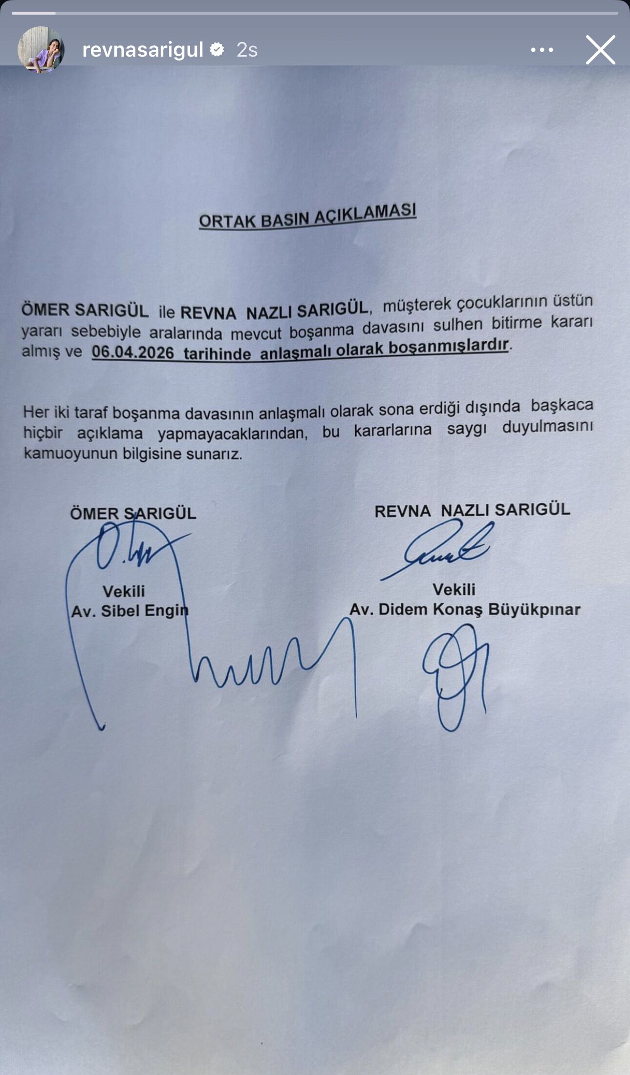 Ömer Sarıgül ile Revna Sarıgül’ün boşanması kamuoyuna anlaşmalı ve sakin bir süreç olarak yansısa da, perde arkasında dikkat çeken iddialar ve yüksek rakamlı talepler yer aldı. Yaklaşık 6 yıl süren evlilik, 6 Nisan’da görülen dava ile tek celsede sona erdi. Ancak bu sonuca gelene kadar yaşananlar magazin gündeminde uzun süre konuşuldu.