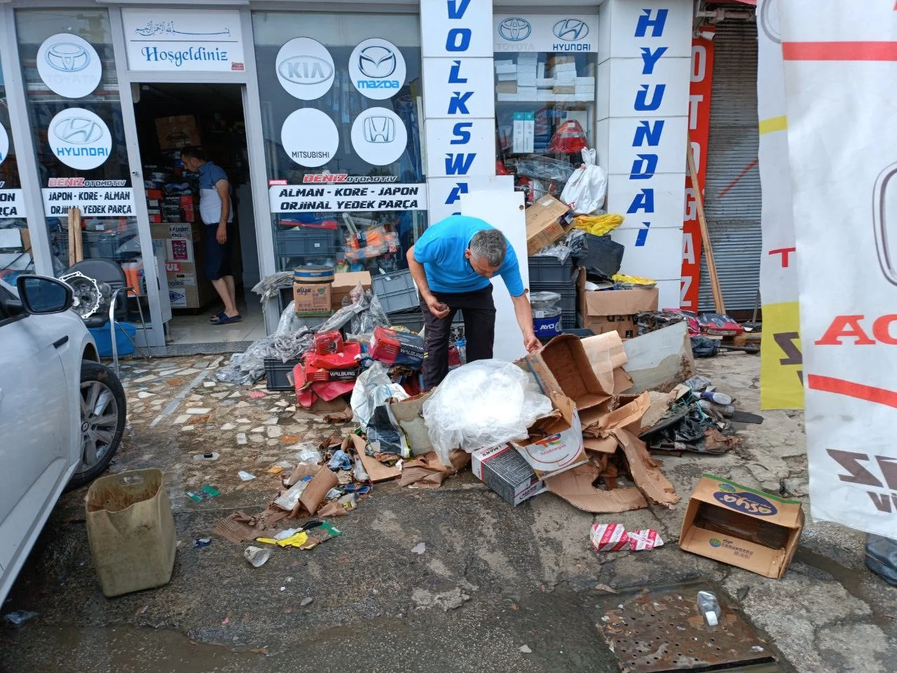Bu yıl 4. kez sel felaketine maruz kalan Samsun’da selin vahameti ise eskilerinden daha büyük oldu. Yoğun yağışın üzerinden 1 gün geçmesine Lovelet, Yabancılar Pazarı gibi birçok işyeri ve dükkan sular altında kaldı. Selden en çok etkilenen yerlerin başında gelen Gülsan Sanayi Sitesi’nde ise dükkanlara 1 metreye yakın su bastı. İş yerleri sular altında kalan esnaf hem sağlam kalan mallarını kurtarmaya hem de iş yerlerini temizlemeye çalışıyor.