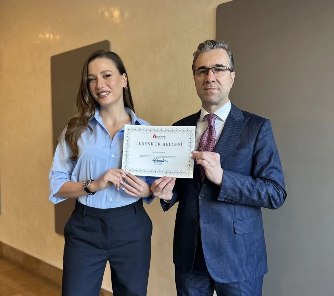 İstanbul Defterdarlığı tarafından düzenlenen programda Serenay Sarıkaya’ya teşekkür belgesi takdim edildi. Yapılan bilgilendirmede, belgenin Vergi Haftası etkinlikleri kapsamında hazırlandığı ve Sarıkaya’nın vergi yükümlülükleri konusundaki uyumu nedeniyle bu belgeye layık görüldüğü ifade edildi.