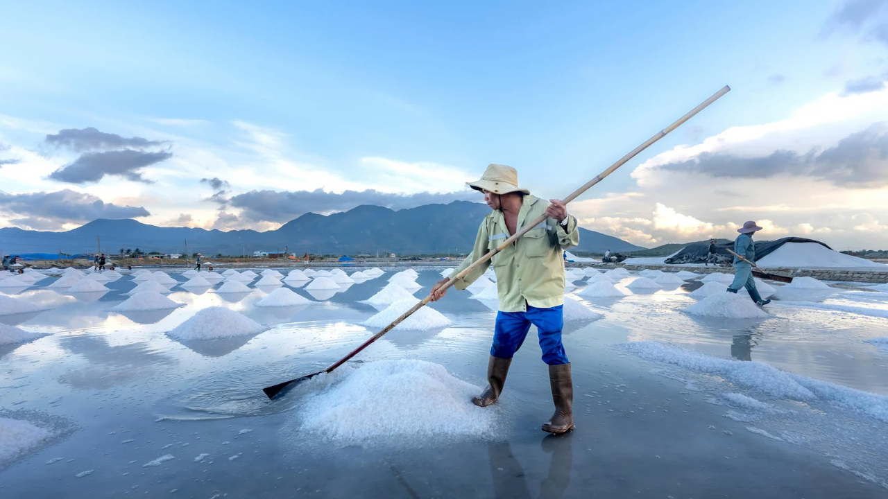 Deniz tuzu üretimi, insanlık tarihinin en eski ve en sade yöntemlerinden biri olarak kabul edilir. Büyük havuzlara alınan deniz suyu, güneş ve rüzgârın etkisiyle yavaş yavaş buharlaşır. Su azaldıkça tuz oranı yükselir ve dipte kristaller oluşur. Bu kristaller özel makinelerle veya yer yer elle toplanır, yıkanır ve kurutularak tüketime hazır hâle getirilir. Akdeniz kıyılarında binlerce yıldır uygulanan bu yöntem, bugün modern ekipmanlarla destekleniyor olsa da temel mantığı değişmemiştir. Deniz tuzu doğal mineraller içerdiği için iri taneli yapıya sahip olur.