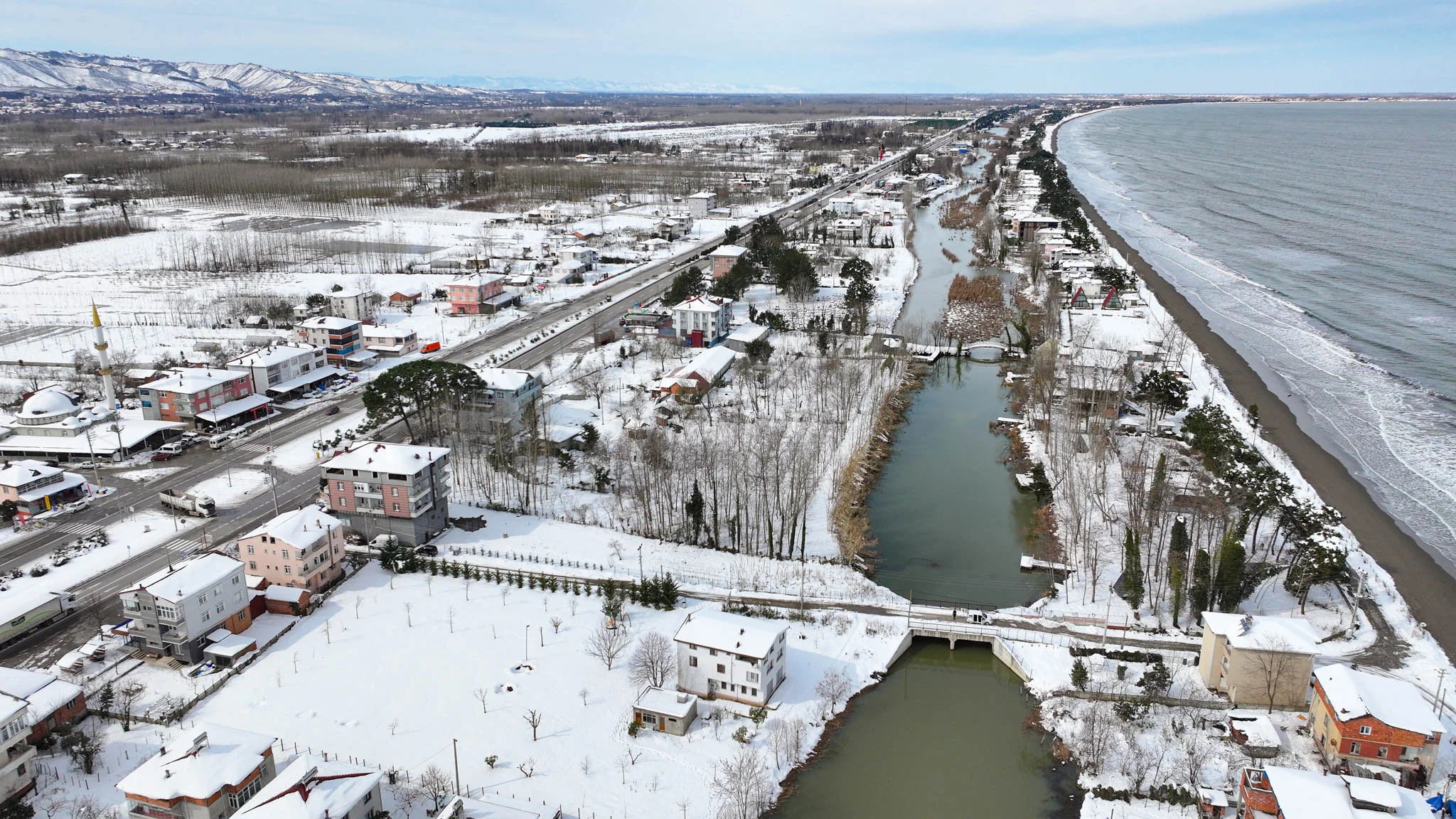 Terme Belediye Başkanı Şenol Kul, karın şehre kattığı eşsiz güzellikleri drone ile çekilen fotoğraflarla sosyal medya hesabında paylaştı.