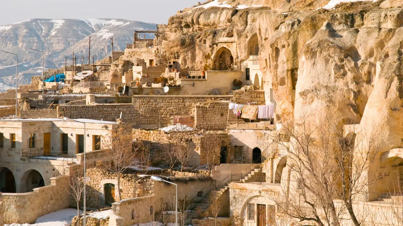 Kapadokya ilçelerinde görülen taş evler, yalnızca estetik bir tercih değil, aynı zamanda iklim koşullarına uygun bir çözümdü. Bölgede bolca bulunan tüf taşı, kolay işlenebilir olmasının yanında yazın serin, kışın ise sıcak tutan yapısıyla tercih edildi. Bu özellik, özellikle Ürgüp ve Nevşehir merkezdeki evlerin mimarisine damga vurdu. Taş konaklar hem günlük yaşamın merkezi oldu hem de bugün turizm açısından değerli bir miras niteliği taşıyor.