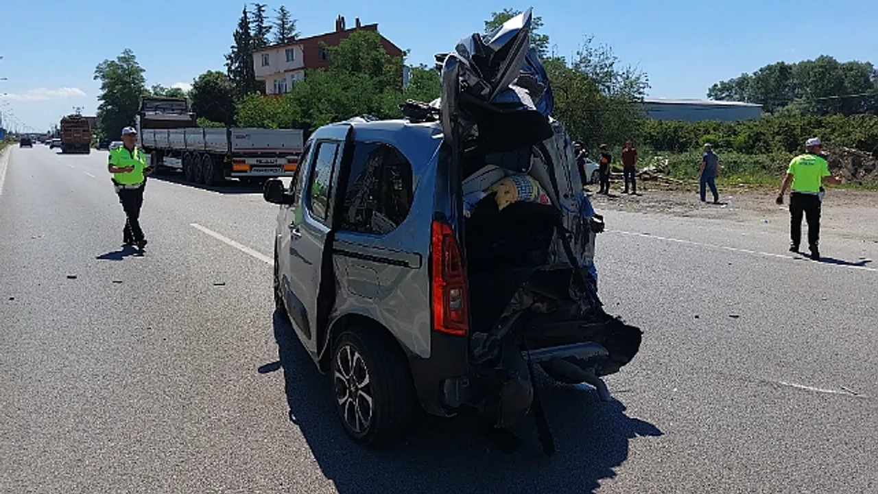 Freni tutmayan tır yol kenarındaki araca çarptı: 1'i ağır 3 yaralı