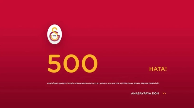 Galatasaray’ın resmi web sitesi sabah saatlerinde erişime kapandı. Siteye giriş yapan kullanıcılar, sunucu kaynaklı olduğu düşünülen 500 hata kodu ile karşılaşarak sayfaya ulaşamadı. Ekranda şu uyarı belirdi: