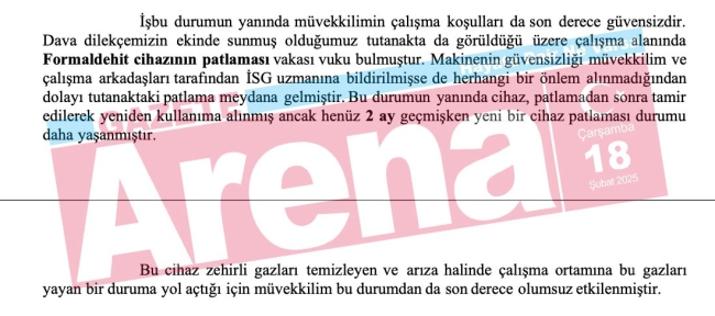 Cihaz daha sonra bir defa daha patladı. Zehirli gazlarla medikal aletleri temizleyen cihazdan ortama, solunduğunda ani etkileşimde ölümle sonuçlanan ve etki süresine bağlı olarak göz sulanmasına ve akciğer parçalamasına sebebiyet veren formaldehit maddesi yayıldı. Zehirli maddeyi soluyan işçilerin olumsuz etkilendikleri öğrenildi.
