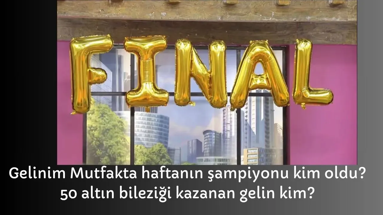 50 adet altın bileziği kazanan gelinin kim olduğu merak ediliyordu. Kıyasıya mücadele sonrası rekabetin üst düzeyde olduğu bir anda şampiyon geri sayımla açıklandı. Selen, Ezgi, Nur ve Sahra'nın mücadele içinde olduğu gelirin mutfakta yarışma programı ekranın başındaki seyirciler tarafından yakından takip ediliyor. Peki 50 adet altın bileziğin sahibi kim oldu?