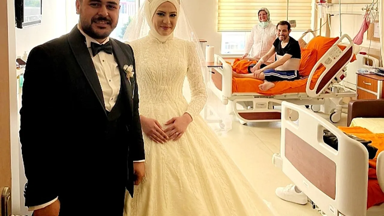 Gelinin vefası: Karaciğer nakli olan dayısını gelinliğiyle hastanede ziyaret etti