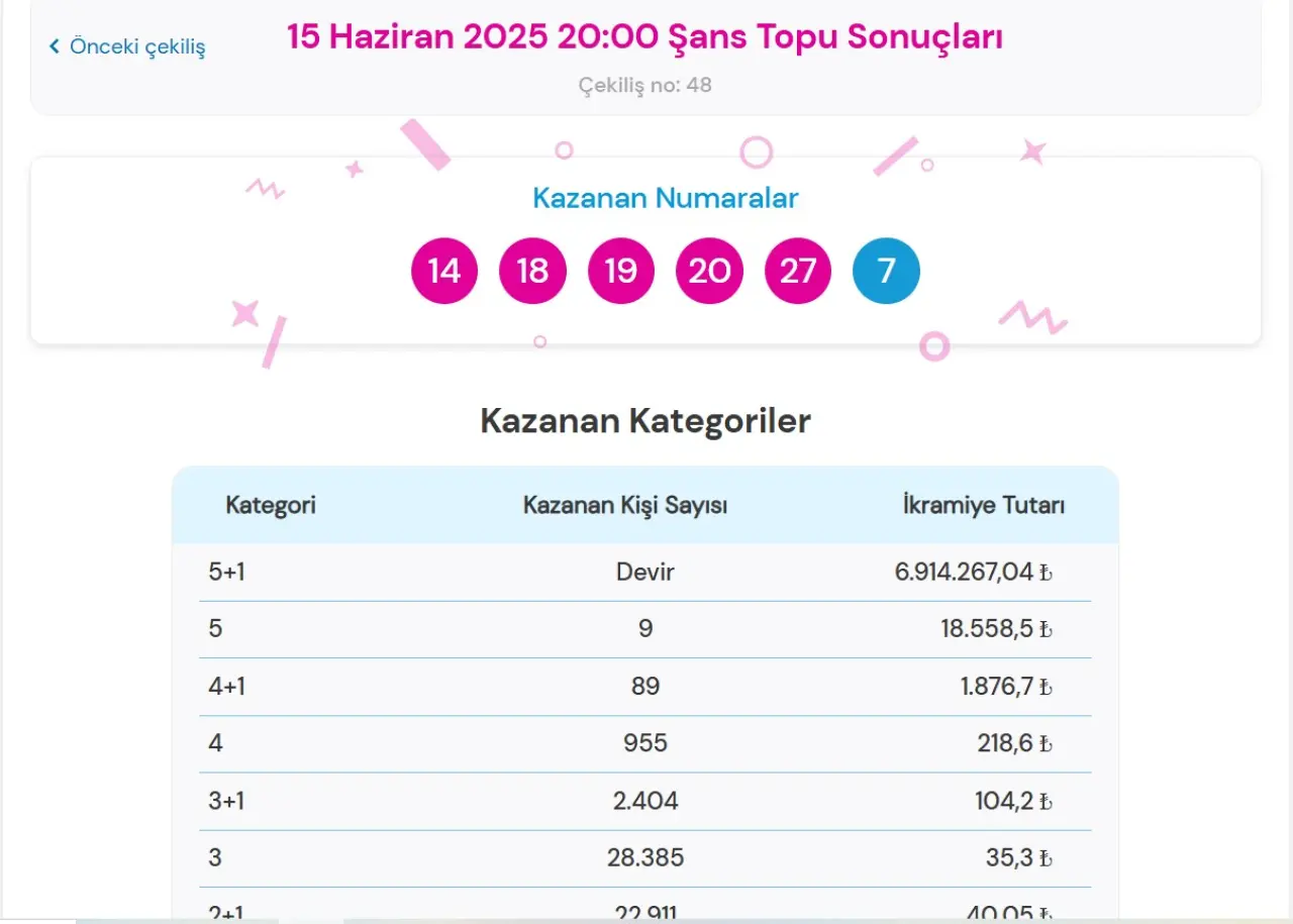 15 Haziran 2025 Şans Topu Sonuçları: Talihli Rakamlar!