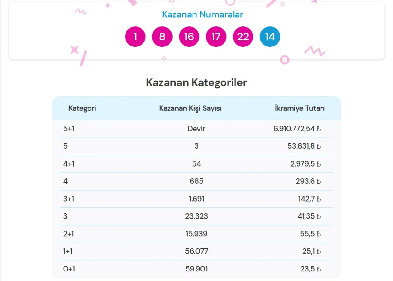 5+1’in sonraki çekilişi 23 Temmuz 2025 Çarşamba günü gerçekleşecek. 3 kez üst üste devreden büyük ikramiyenin 4. çekilişte 10 milyon lira seviyesini zorlaması bekleniyor.