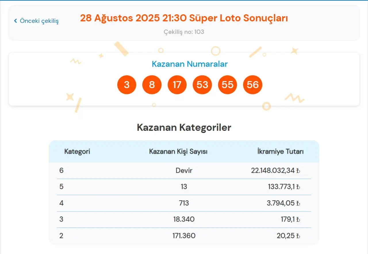 Süper Loto Çekiliş Sonucu 28 Ağustos 2025 Perşembe: 22 Milyon TL Devretti!