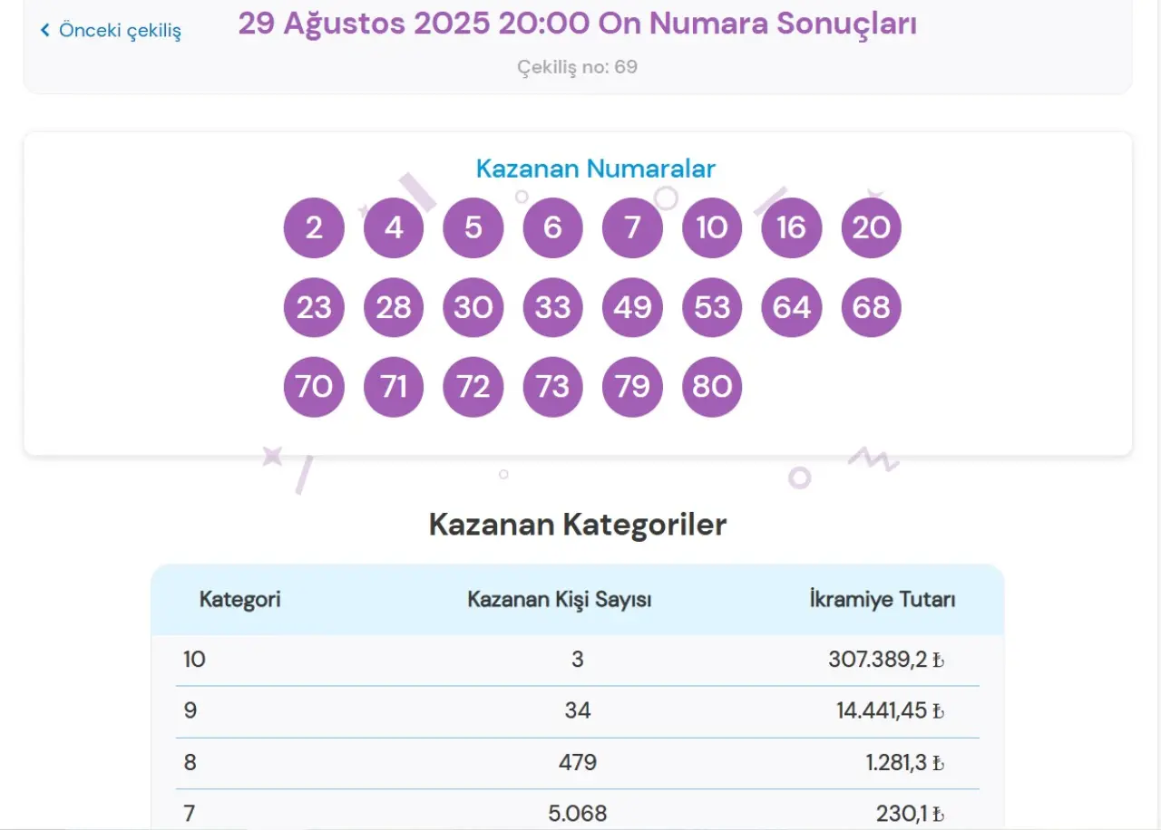 On Numara 29 Ağustos 2025 Cuma Çekilişi Sonuçları!