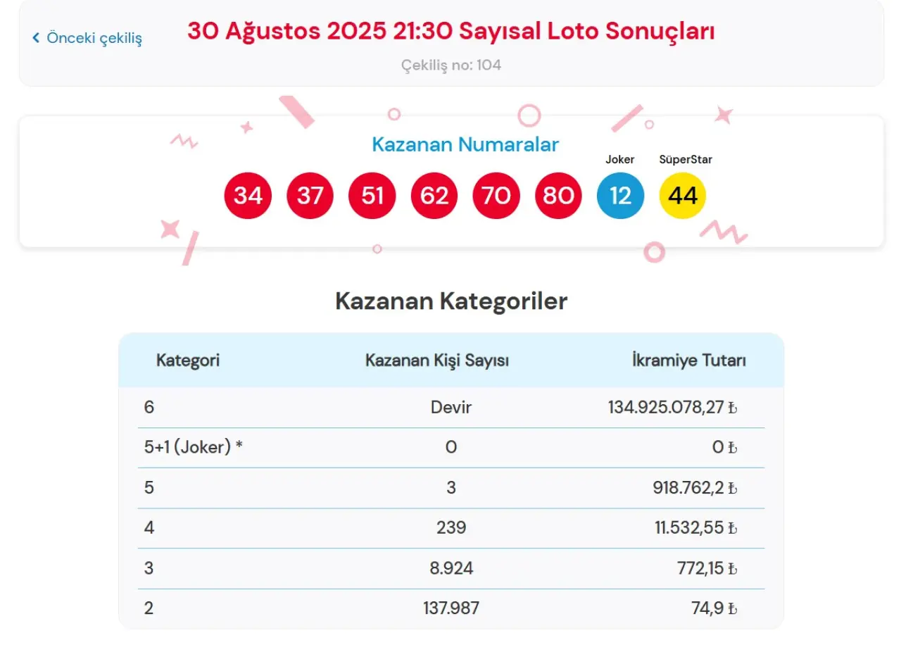 Çılgın Sayısal Loto 30 Ağustos Cumartesi İkramiye Miktarları: Kim Ne Kadar İkramiye Kazandı?