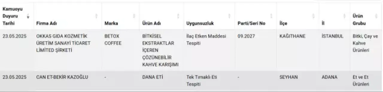 Tarım ve Orman Bakanlığı, gıda güvenliği denetimlerini aralıksız sürdürüyor. 23 Mayıs tarihli güncel listede yer alan ürünler ve firmalar, halk sağlığını tehdit eden durumlar nedeniyle kamuoyuyla paylaşıldı.