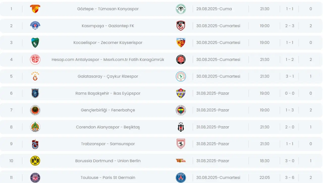 Gençlerbirliği - Fenerbahçe | 31.08.2025 | 1 - 3 |