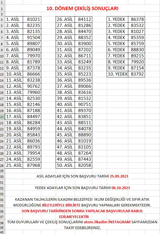 ATOM otobüsüne yalnızca atıkları getirenlerin katılabileceği çekilişte her ay 50 aileye 500 TL sahiplerini buluyor.10 aylık bir süredir devam eden “Getir Atığını Al Harçlığını” proje kapsamında belediyenin toplantı salonunda Samsun 8.Noter Katibi Cahit Cengiz Gülsevin gözetiminde 10 bin 800 bilet arasından kazanan 50 kişi yapılan çekilişle belli oldu. Programda konuşan ve atık ayrıştırmanın önemine değinen İlkadım Belediyesi Başkan Yardımcısı Şerif Mırık,”Belediye Başkanımız Necattin Demirtaş'ın hassasiyetle üzerine durduğu Sıfır Atık Projesine öncülük etmenin mutluluğunu yaşıyoruz. Geri dönüşebilir atıkların kaynağında ayrıştırılması, israfın önlenmesi, çevre duyarlılığının artırılması ve toplumda farkındalık oluşturulması amacıyla bilgilendirme çalışmalarına devam ediyoruz. Davranışların insanlarımızda alışkanlık haline gelmesi zaman alıyor. Biz de bu noktada geri dönüşüm bilincini ilçe halkımıza aşılama gayreti içerisindeyiz. Gelecek nesillere bırakacağımız en büyük miras daha temiz bir çevre. Bunun için çalışıyoruz” şeklinde konuştu.