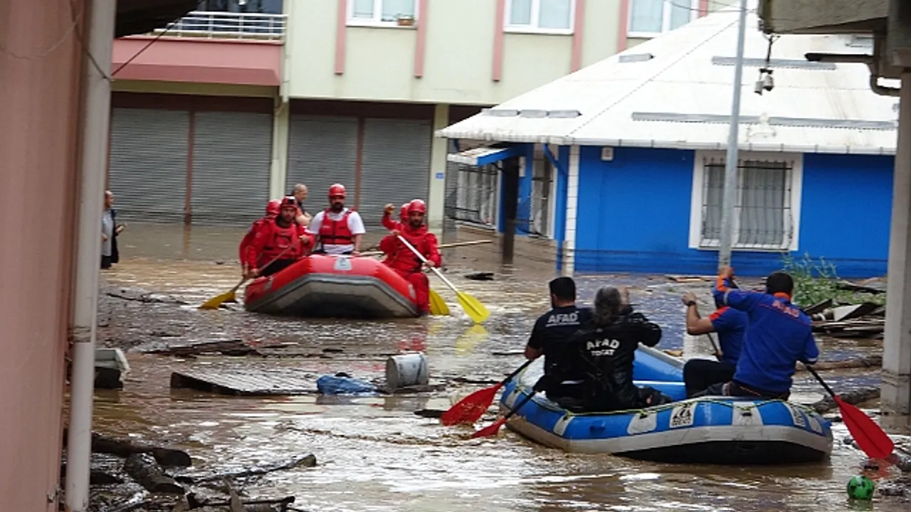 Giresun’un Piraziz ilçesinde etkili olan şiddetli yağış sebebiyle Ordu-Giresun arasındaki Abdal Deresi taştı. Derenin taşması sonucu bazı ev ve işyerlerini su basarken, ev ve iş yerlerinde mahsur kalan vatandaşlar AFAD ekipleri tarafından botlarla kurtarıldı.