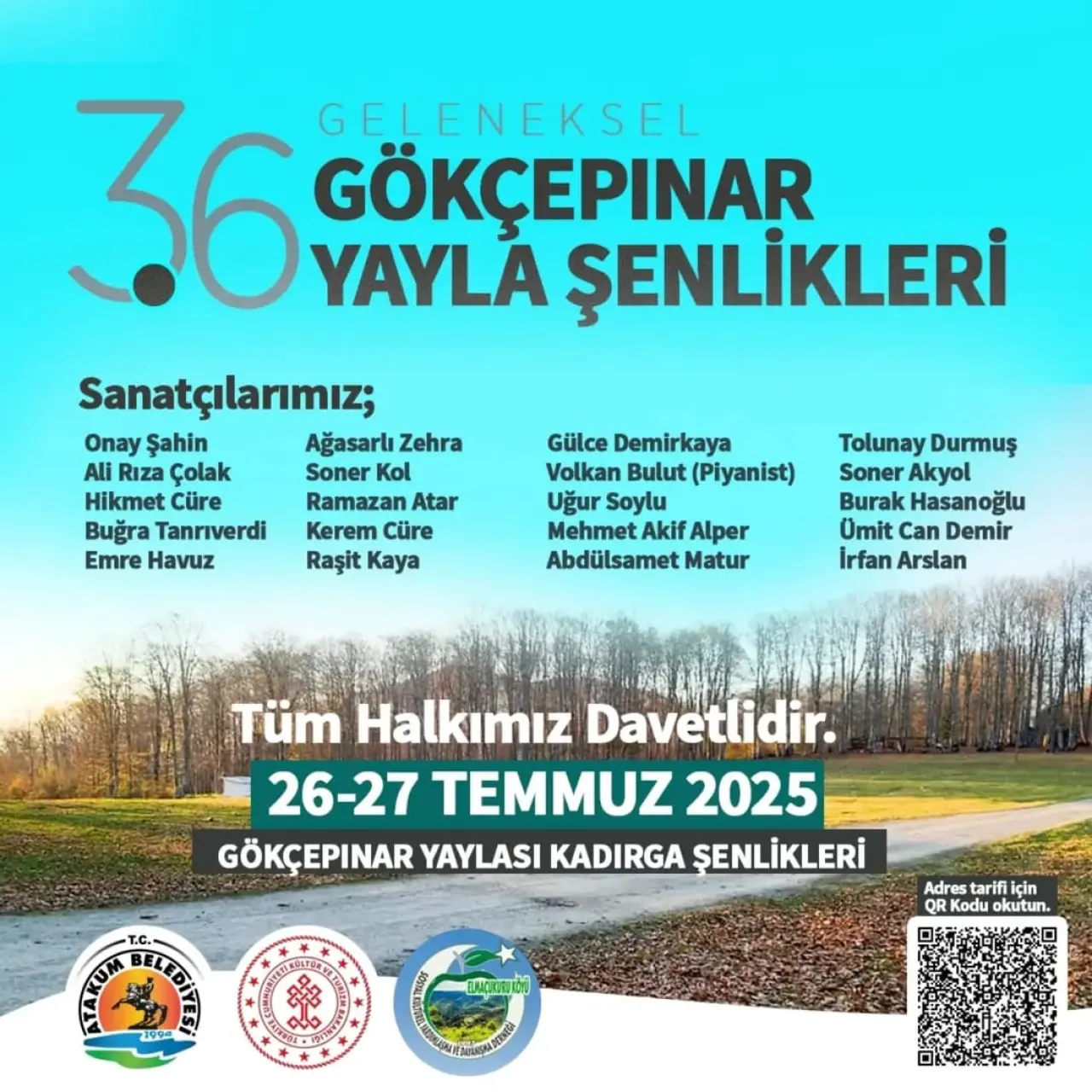 Atakum Belediyesi’nden yapılan açıklamada, “36. Geleneksel Elmaçukuru Gökçepınar Yaylası Kadırga Şenliklerinde değerli sanatçılarımızın katılacağı konserler, halk oyunları ve birbirinden özel etkinlikler halkımızla buluşacak. Yöresel ezgilerimizle, festival coşkusunu hep beraber yaşayacağız. Gökçepınar Yaylası Kadırga Şenliklerine, tüm halkımızı bekliyoruz.” ifadeleri yer aldı.