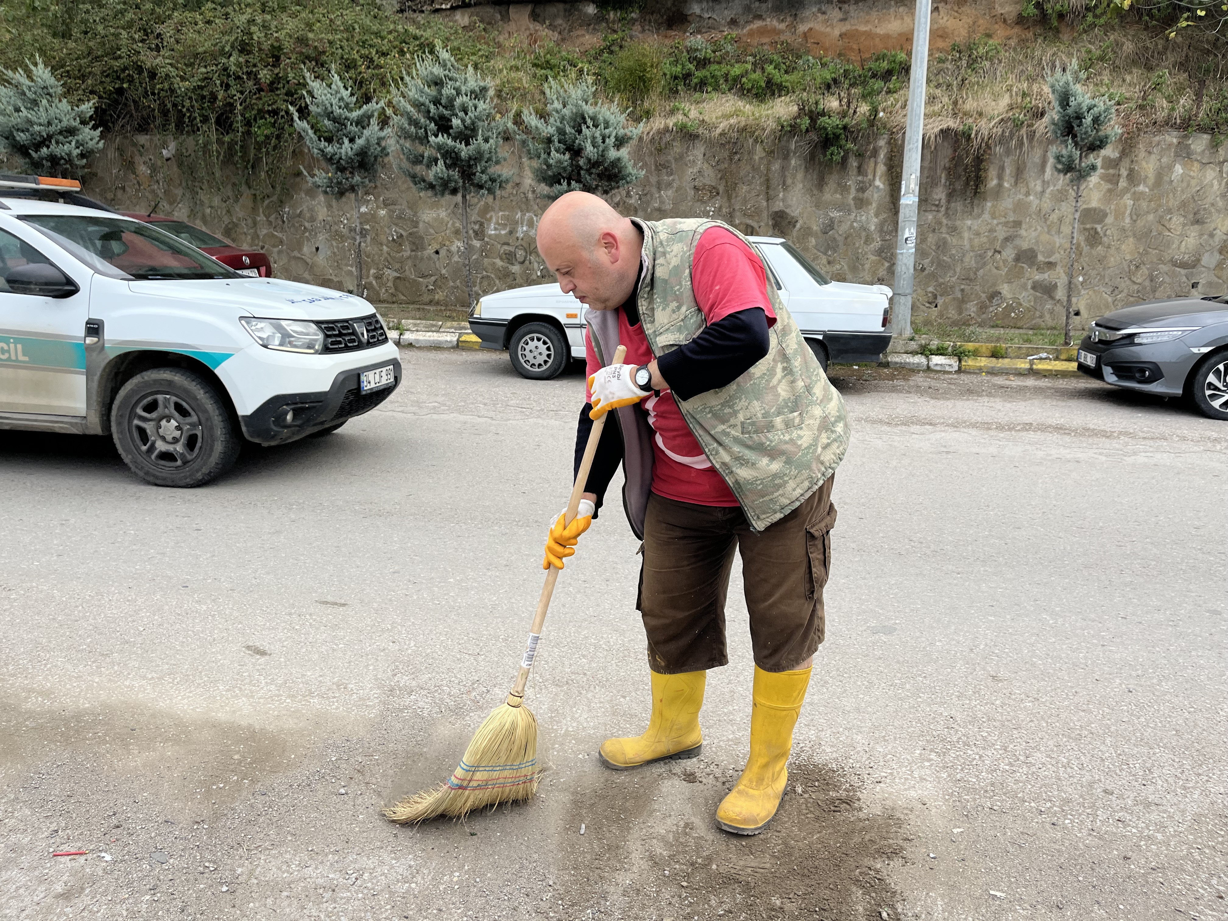 Yaptığı çalışmaları sırası ile anlatan temizlik gönüllüsü Kümeç, "İzmaritler yapışmış durumda. Maalesef insanlarımız çok izmarit atıyor. İlk önce kazma ile kaldırım diplerini kazıyorum, sonra kürekle topluyorum, çöp kutusuna atıyorum" diye konuştu.