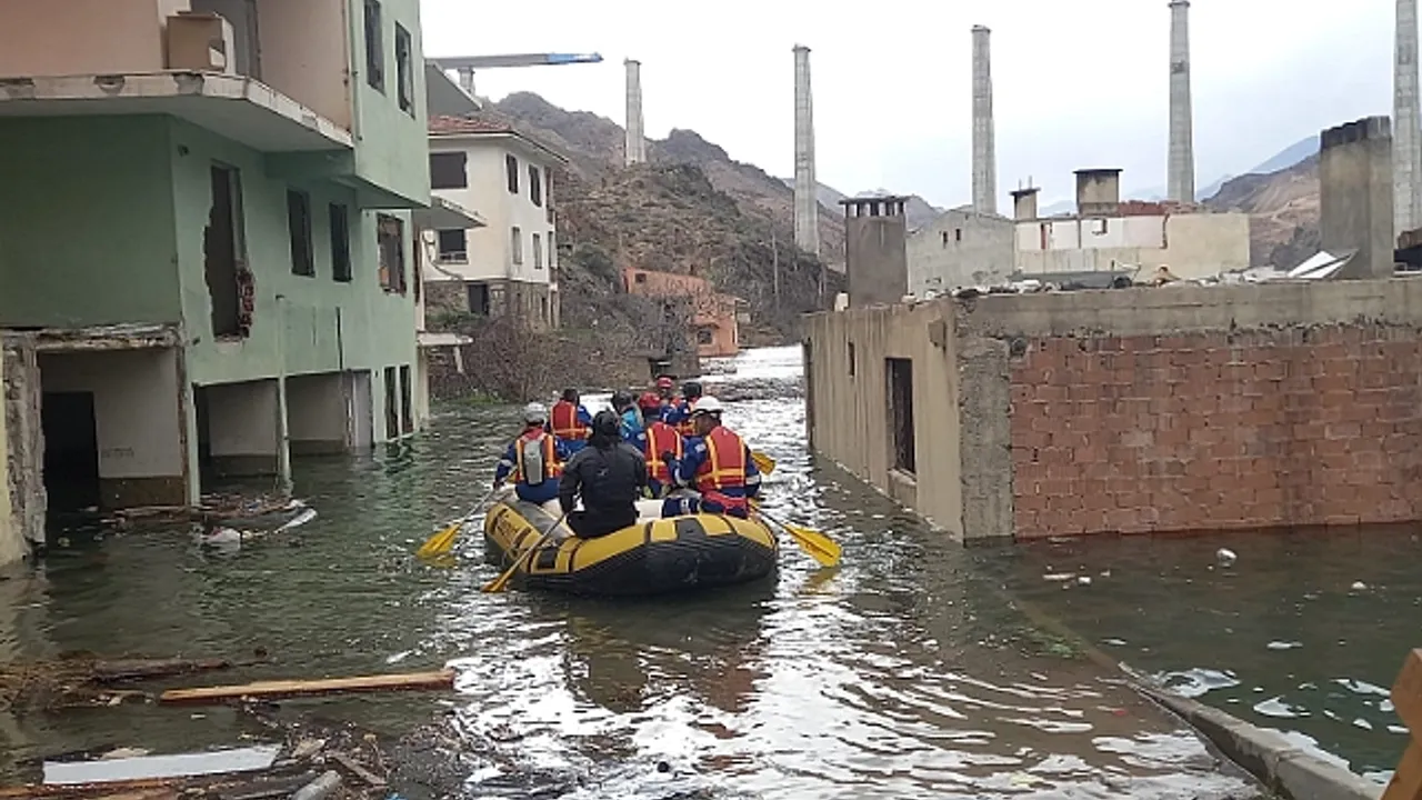 Baraj sularının seviyesi 102 metreyi aşarken, ilçe merkezi de tamamen sular altında kaldı. Cadde, sokak, ev ve iş yerleri sular altında kalırken, karayla bağlantısı kesilen binalarda mahsur kalan sahipsiz sokak hayvanları bot yardımıyla kurtarıldı.