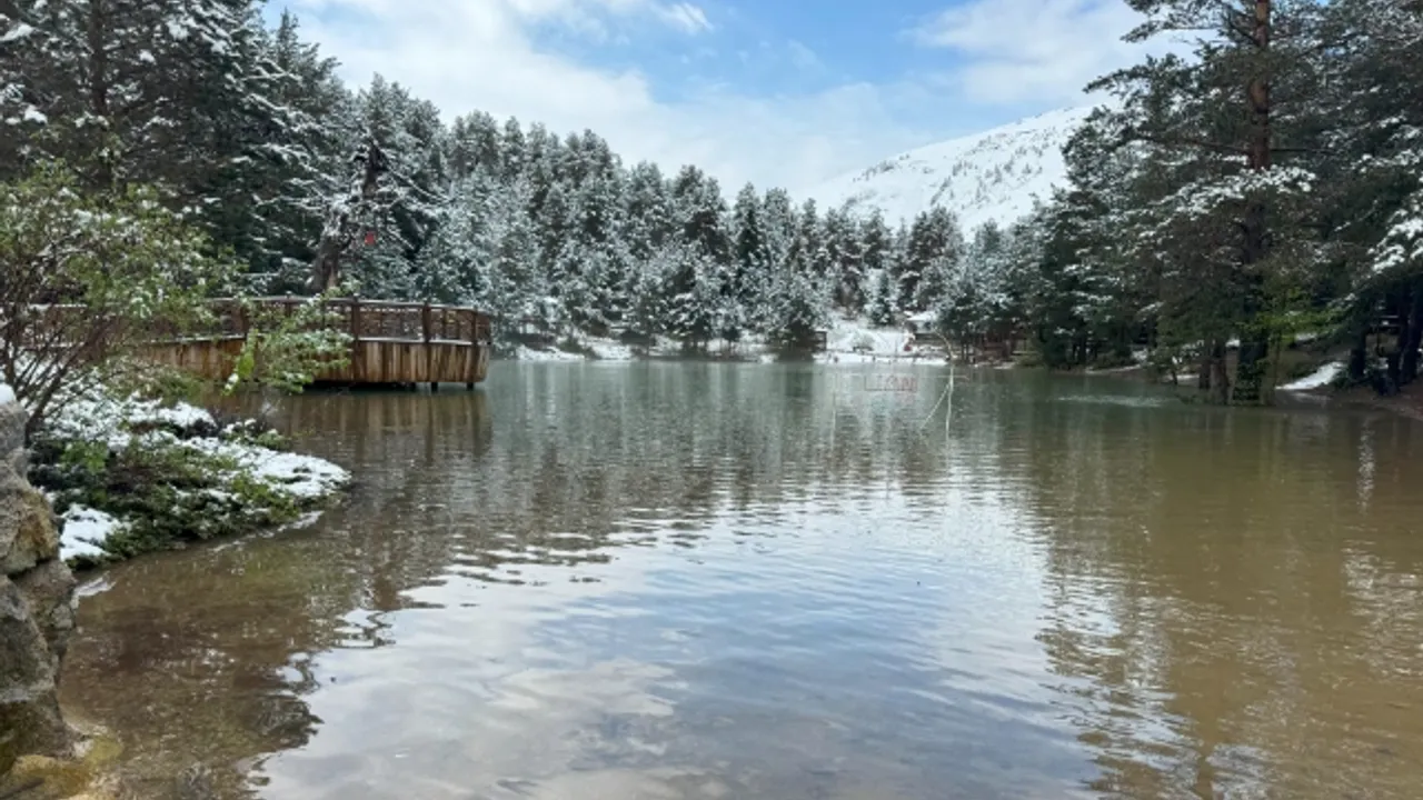 Torul ilçesine bağlı Zigana köyü sınırlarındaki “Zigana’nın nazar boncuğu” olarak nitelendirilen Limni Gölü'nde yağışın ardından gölün etrafını sarmalayan çam ağaçları beyaz örtüyle kaplanırken eşsiz bir manzara oluştu.