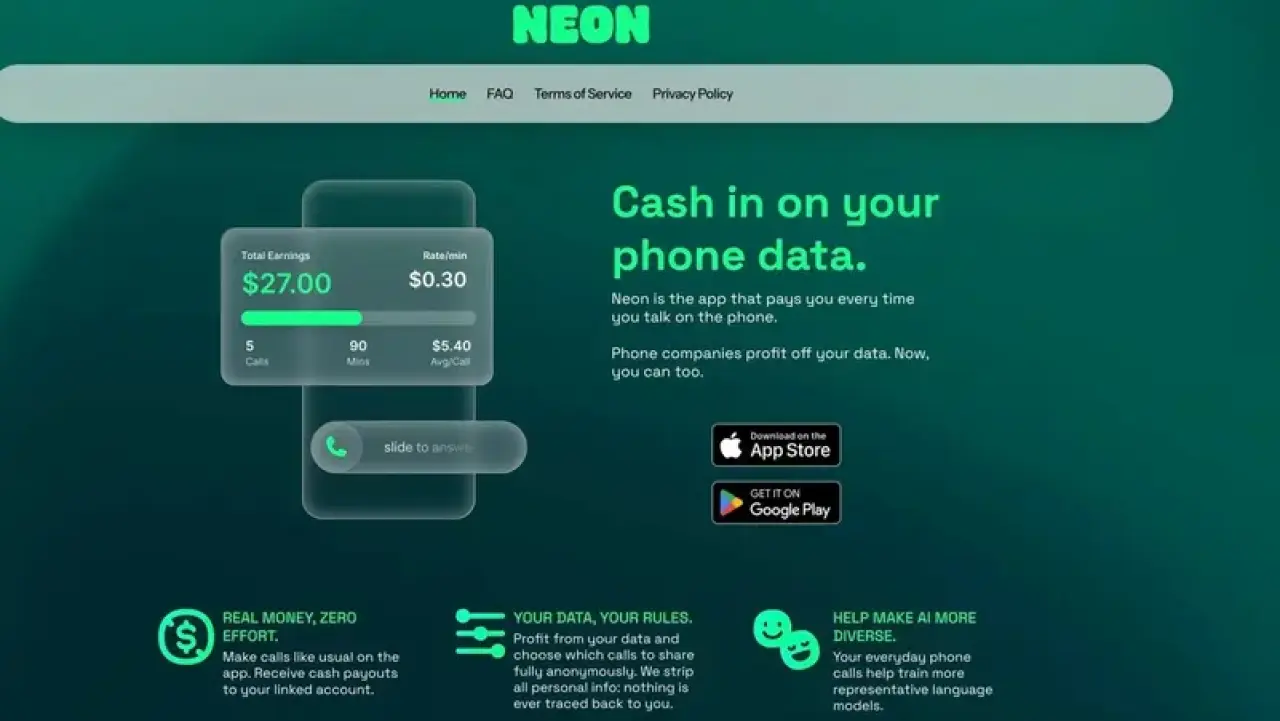 Neon’un şartlarına göre uygulama, gelen ve giden aramaları kaydediyor. Eğer karşı taraf da Neon kullanıyorsa, konuşmanın tamamı saklanıyor. Şirket, kullanıcıların konuşma dakikası başına 30 cent ödendiğini ve bu miktarın günlük 30 dolara kadar çıkabileceğini duyurdu.