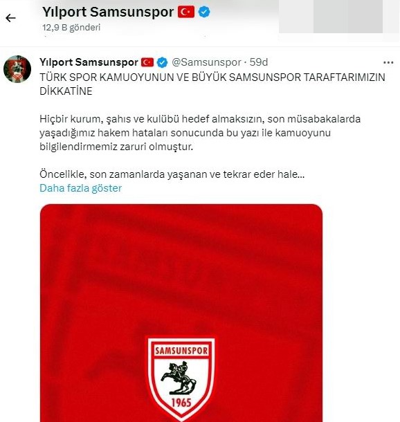 Samsunspor’dan yapılan ‘Türk spor kamuoyunun ve büyük Samsunspor taraftarımızın dikkatine’ başlıklı açıklamada ise, “Hiçbir kurum, şahıs ve kulübü hedef almaksızın, son müsabakalarda yaşadığımız hakem hataları sonucunda bu yazı ile kamuoyunu bilgilendirmemiz zaruri olmuştur. Öncelikle, son zamanlarda yaşanan ve tekrar eder hale gelen hakem hataları; sporcularımızın ve tüm emektar çalışanlarımızın emeklerinin önüne geçmekte ve camiamızı derinden üzmektedir. Ne yazık ki, benzer hakem hatalarının başka kulüp müsabakalarında da gerçekleştiği görülmektedir. Samsunspor Kulübü olarak yer aldığımız her alanda ‘temiz’ kalmaya, fair-play ruhuna ve TFF talimat ve hükümlerine uygun hareket etmeye çalışmakta ve bu konularda hassas davranmaktayız. Biz, ‘adaletli’ bir düzende maçlarımızı oynamak istemekte, hiçbir kişi ve kurumdan ‘ayrıcalık’ beklememekteyiz. Rakiplerimizi tebrik etmekle birlikte; özellikle Pendikspor maçımızda yaşanan hakem hataları nedeniyle geri getirilmesi mümkün olmayacak puan kayıplarını ve geçtiğimiz maçlarda aleyhimize haksız yere verilen kararları örnek olarak sunmak isteriz” diyerek söz konusu pozisyonlara yer verdiler. Açıklamada şöyle denildi: