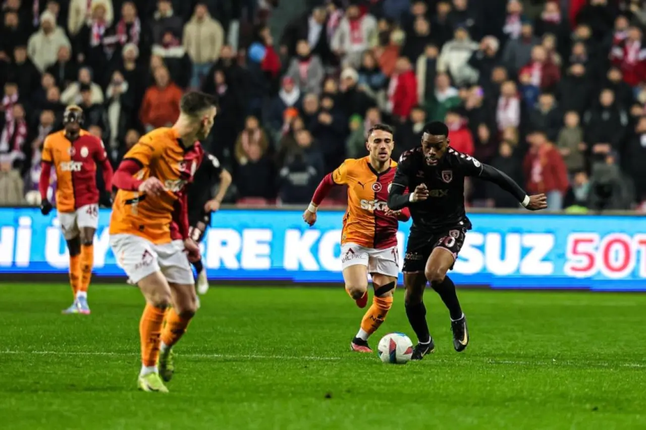 Trendyol Süper Lig’in 31. hafta Reeder Samsunspor, Samsun 19 Mayıs Stadı’nda bugün Galatasaray ile karşılaştı. Kırmızı-beyazlıların ilk yarısını 0-1 geride tamamladı. 10. dakikada Holse’nin ceza alanı içinde Muslara ile karşı karşıya kaldığı durumda yaptığı vuruşta meşin yuvarlak ağlara gitti. VAR’ın uyarısıyla ofsayt olduğu gerekçesiyle gol iptal edildi. 14. dakikada Victor Osimhen’in ceza alanı içi sol tarafından vuruşunda defanstan seken topu penaltı noktası yakınında alan Yunus Akgün’ün vuruşunda top ağlara gitti ve Samsunspor 0-1 mağlup duruma düştü. İlk devre bu skorla sona erdi.