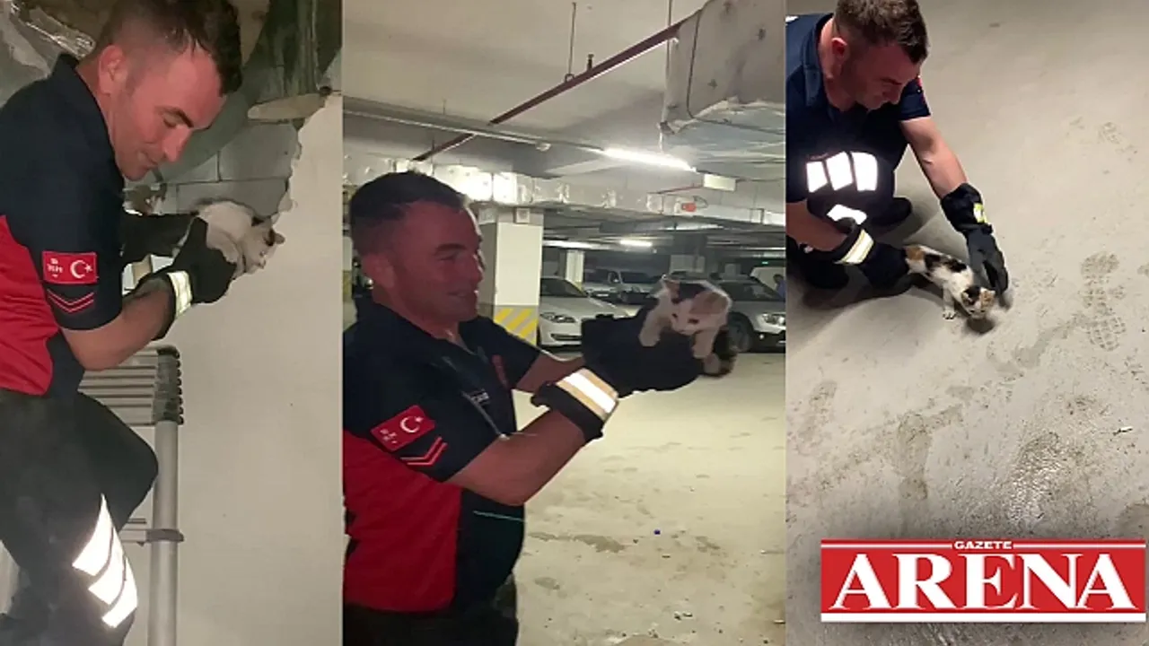 Erbaa Belediyesine ait Yöresel Ürünler Pazarında görev yapan zabıta ekipleri, havalandırma boşluğundan kedi sesinin geldiğini duydu. Zabıta ekipleri kediyi bulunduğu yerden çıkartamayınca durumu itfaiye ekiplerine bildirdi. Bölgeye gelen ekipler, kediyi kurtarmak için çalışma başlattı. Duvarı kıran itfaiye ekipleri, kediye ulaştı. Bulunduğu yerden kurtarılan kediye daha sonra süt verildi. Kedi, yapılan kontrolün ardından sokağa bırakıldı.