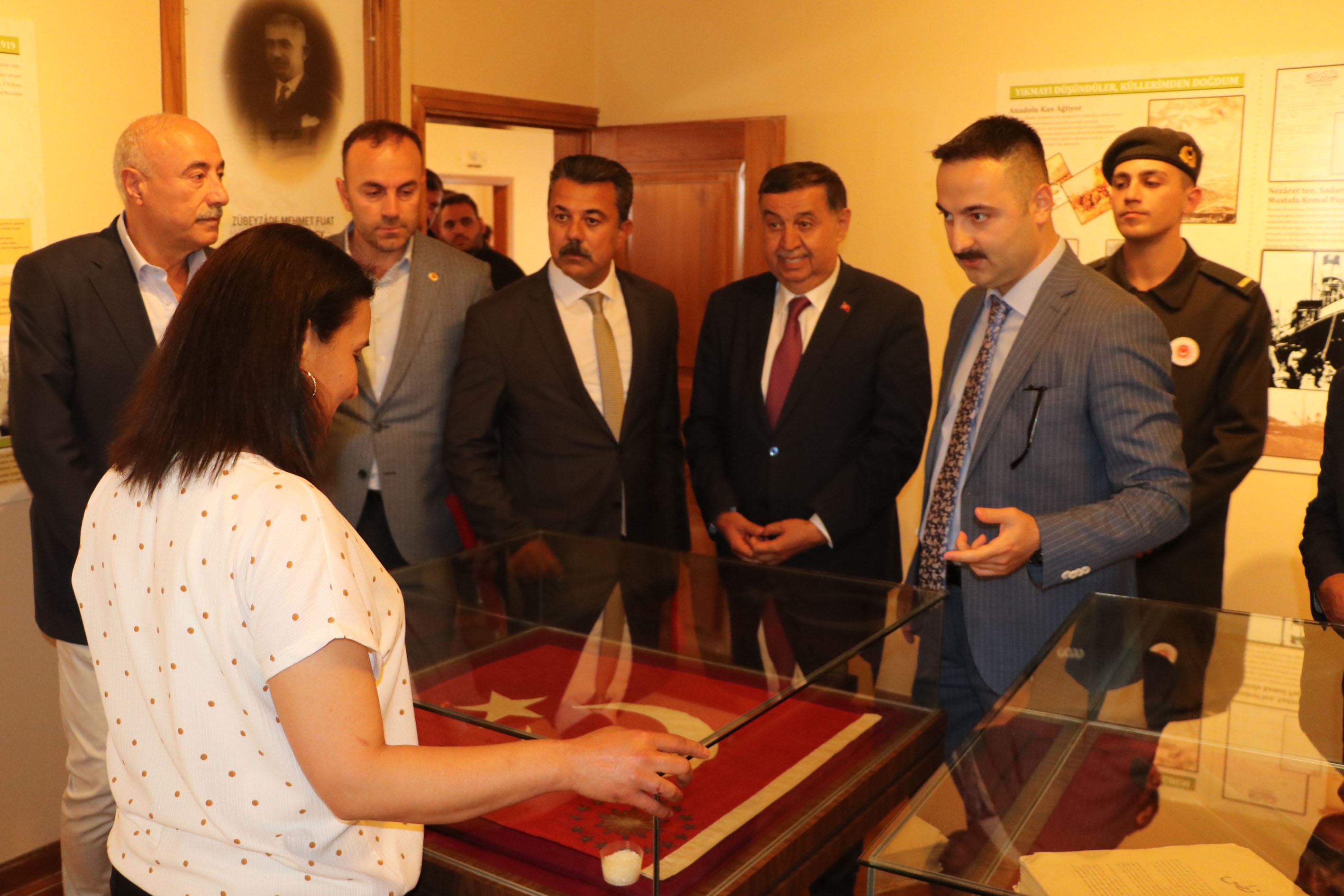 Kaymakam Ayvat ve Başkan İkiz Atatürk Evi Sorumlusu Rukiye Bulut’a Atatürk Evi'nde sergilenmek üzere Havza Genelgesi'nin replikasını hediye ettiler