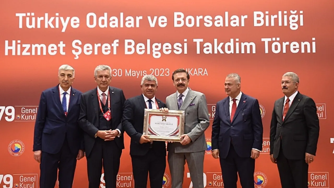 TOBB 79. Genel Kurulu kapsamında Cumhurbaşkanı Recep Tayyip Erdoğan, Ticaret Bakanı Mehmet Muş ve Türkiye Odalar ve Borsalar Birliği (TOBB) Başkanı Rifat Hisarcıklıoğlu’nun katılımıyla Birlik merkezinde düzenlenen Hizmet Şeref Belgesi Takdim Töreni'nde Havza TSO Başkanı Erkan Acar ve Havza TSO Genel Sekreteri Arif Altun’a Hizmet Şeref Belgesi Takdim edildi.