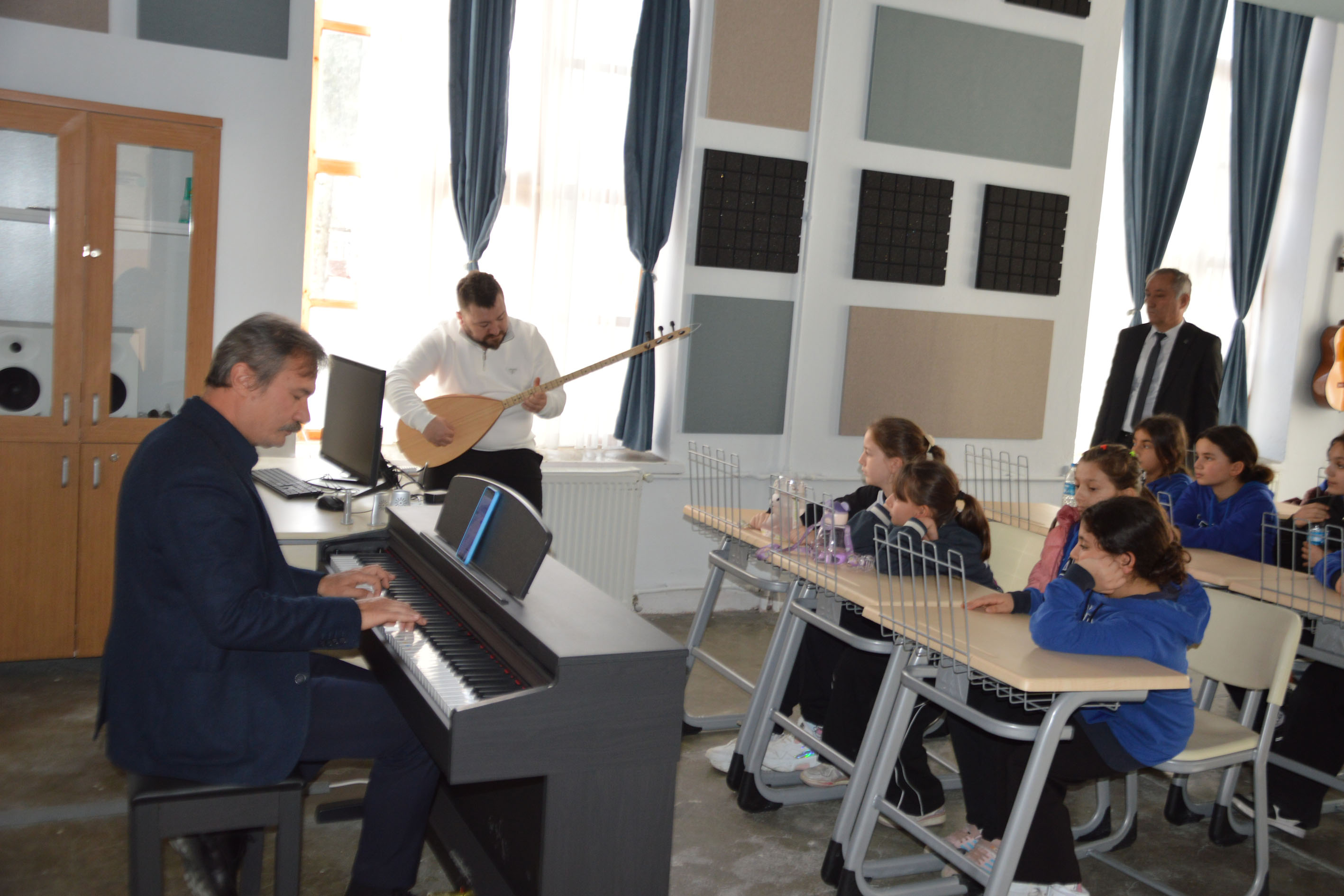 Vakıfbank Atatürk Ortaokulundan kurslara katılan öğrencileri ziyaret eden Havza Milli Eğitim Müdürü Mehmet Oğuz Ertuğ, atölyeleri gezerek öğretmenlerden bilgi aldı. Ertuğ, müzik atölyesinde öğrencilere mini piyona konseri de verdi.