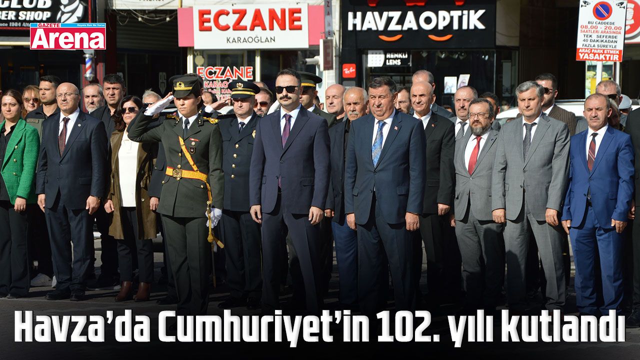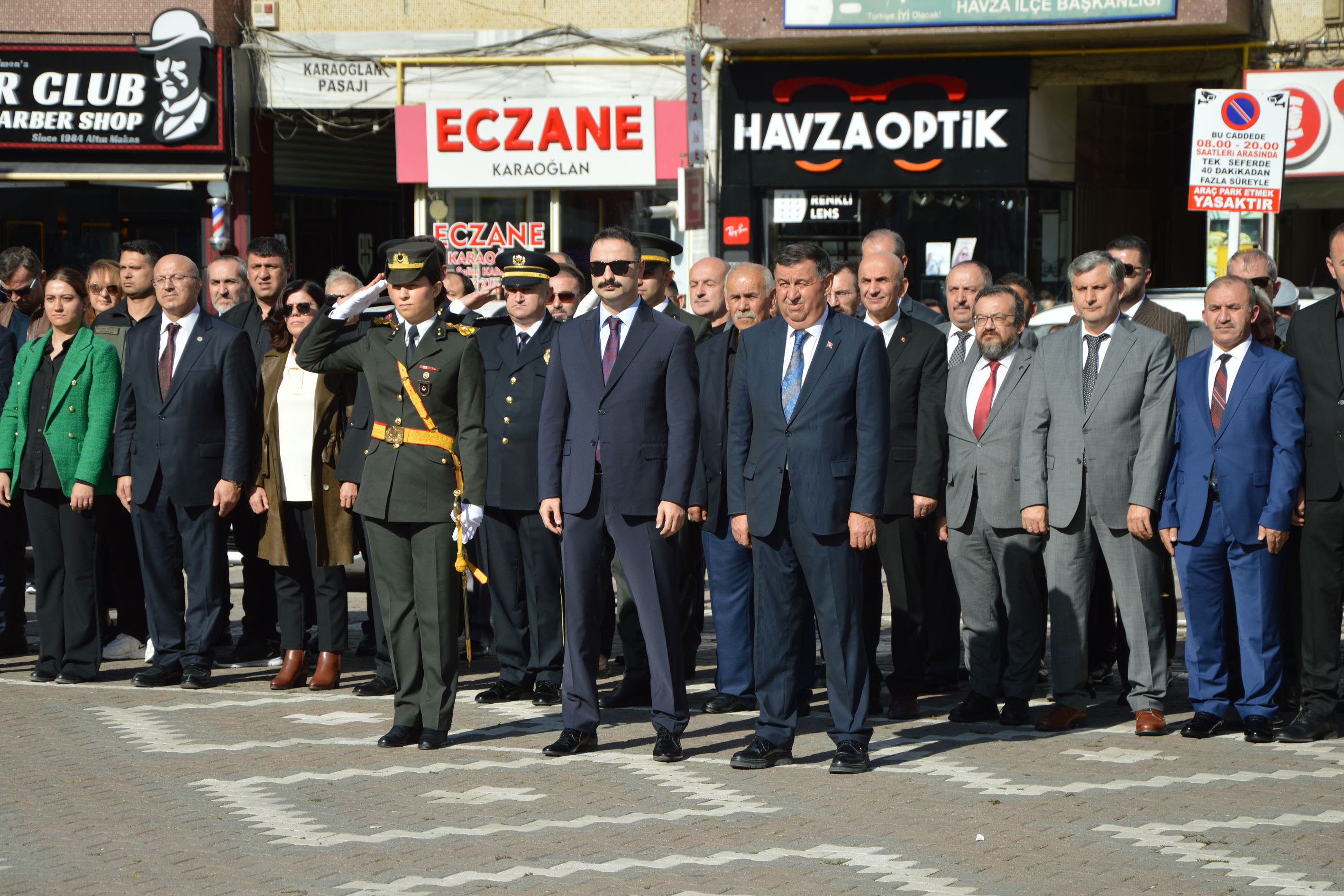 Samsun’un Havza ilçesinde Cumhuriyet’in 102. yılı dolayısıyla Mehmetçik Meydanı’nda program düzenlendi. Cumhurbaşkanı Recep Tayyip Erdoğan’ın mesajının okunmasının ardından Kaymakam Mustafa Ayvat, Garnizon Komutan Vekili Personel Teğmen Feride Paşayiğit ve Belediye Başkanı Murat İkiz Atatürk Anıtı’na çelenk sundu.
