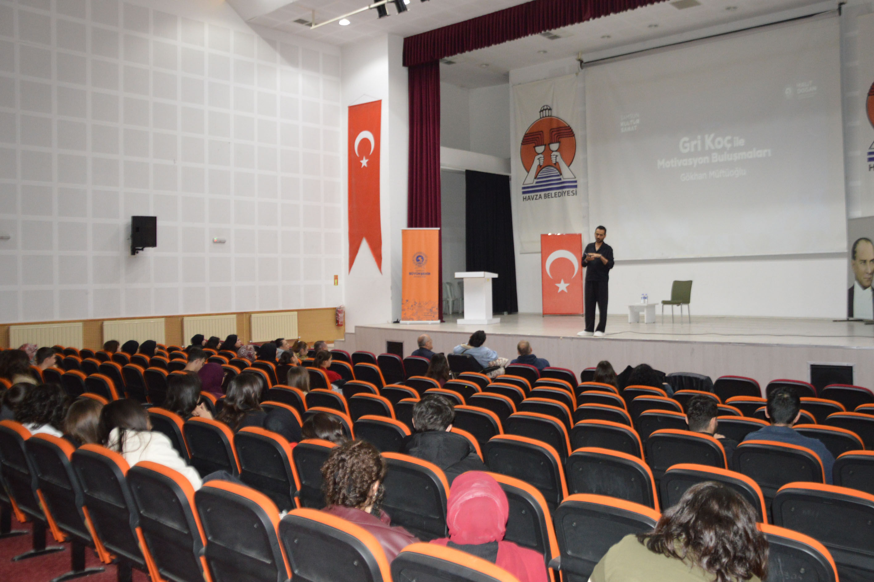Samsun Büyükşehir Belediyesi tarafından "Parlayan Şehir Gururla Samsun” sloganı ile Havza Belediyesi Kültür Merkezinde Gri Koç İle Motivasyon Buluşmaları etkinliğinde, eğitimci-yazar Gökhan Müftüoğlu gençlerle bir araya geldi.