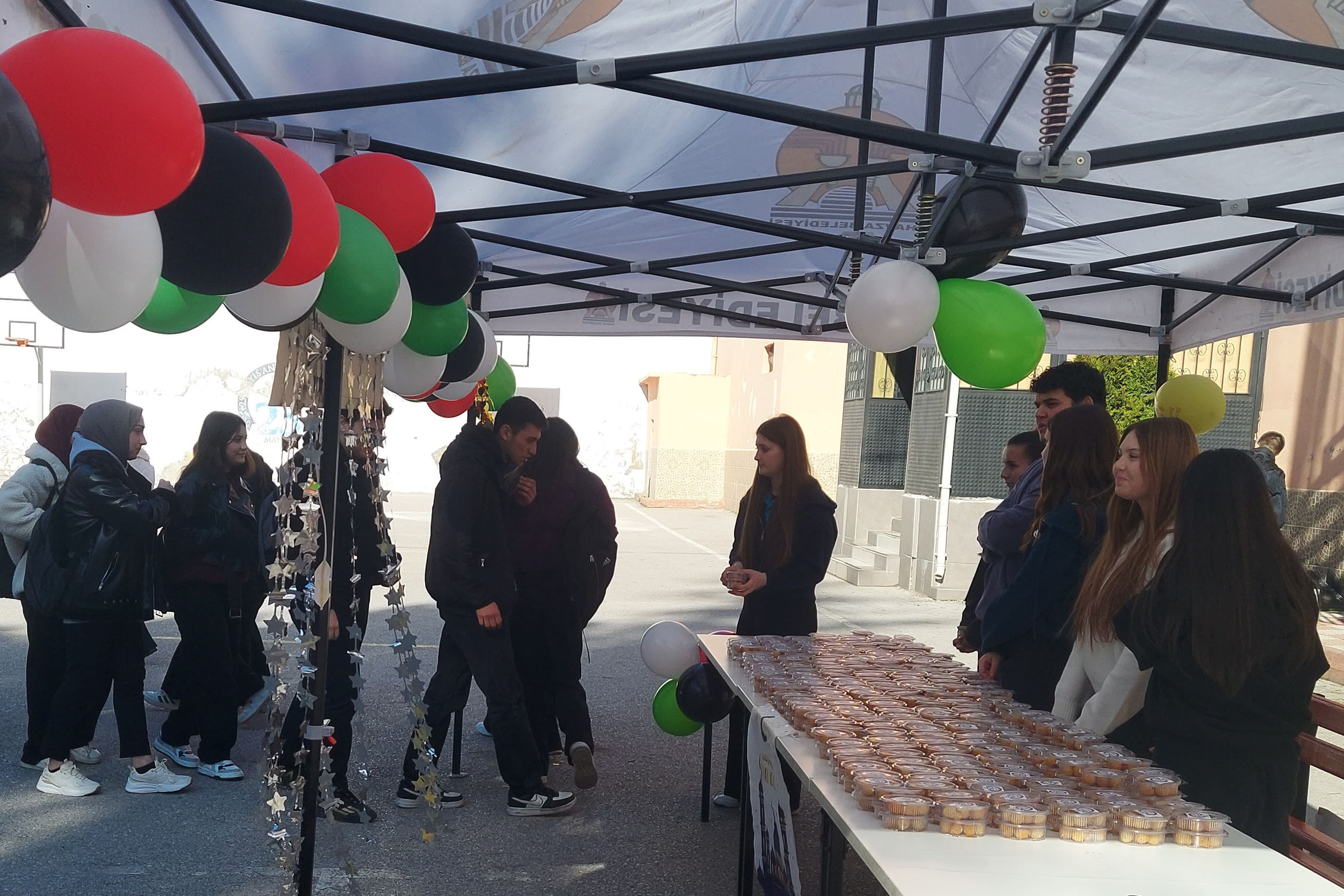 Okul bahçesinde kurulan stantta dağıtılan iftarlık lokma tatlılarına öğrenciler büyük ilgi gösterdi.